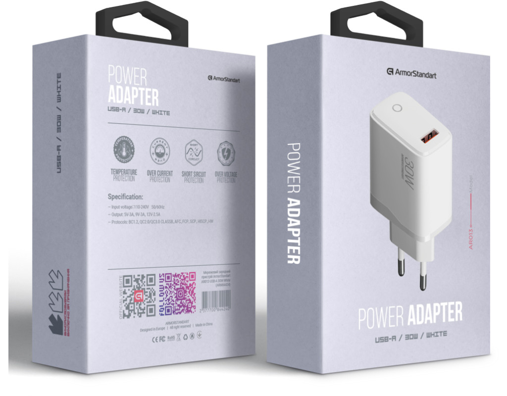 | Зарядний пристрій Armorstandart AR013 USB-A 30W white (ARM84424) відкриває нові горизонти для вашої мобільності, поєднуючи в собі якість, швидкість та надійність. Завдяки максимальній вихідній потужності 30 Вт та інтелектуальним швидкісним зарядним протоколам, цей адаптер гарантує безпечне та ефективне заряджання для різноманітних пристроїв — від смартфонів і планшетів до фітнес-браслетів, геймпадів, рацій, TWS навушників та екшн-камер. Пристрій обладнано одним USB-A портом, через який можна здійснювати зарядку з вихідним струмом до 3 А, що дозволяє досягти оптимальної продуктивності для кожного підключеного гаджета. Виконаний із міцного термостійкого пластику, він забезпечує високу стійкість до умов експлуатації та виключну довговічність. Компактний дизайн робить Armorstandart AR013 незамінним супутником у подорожах, дозволяючи вам мати надійний заряд на ходу. Крім цього, пристрій оснащено системами захисту від перевантаження струмом, перегріву та короткого замикання, що робить його безпечним у використанні, надаючи вам впевненість у захисті ваших електронних пристроїв. Обирайте Armorstandart AR013 — ваш надійний партнер у світі мобільних технологій. |