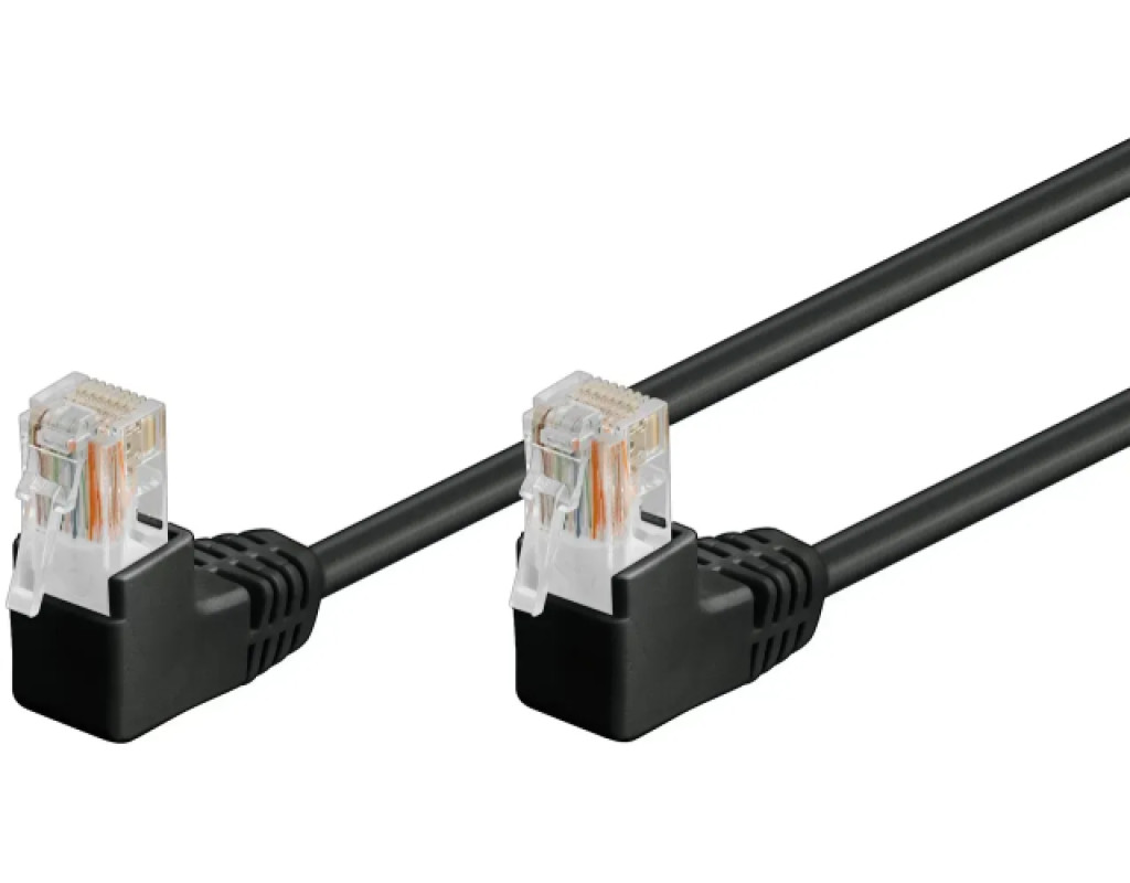 Патч-корд литий неекранований RJ45 UTP5e 0.5m patch D=4.9mm AWG26 2x90° Gold, Cu,чорний