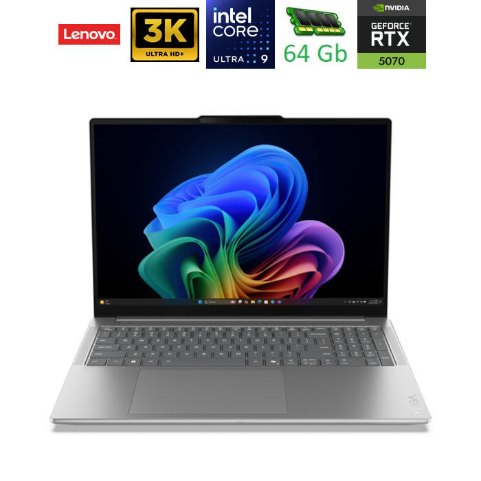 Yoga Pro 9 пропонує максимальні можливості завдяки оперативній пам'яті нового покоління LPDDR5x. Ви зможете працювати з безліччю програм одночасно без затримок. А неймовірну графічну міць забезпечує відеокарта NVIDIA GeForce RTX 50 серії – ідеально для створення контенту, відеомонтажу чи ігор на максимальних налаштуваннях.