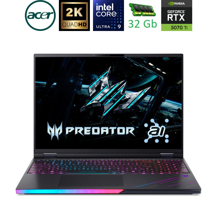Продуктивність на рівні настільного комп'ютера, де б ви не були. Отримайте легендарну продуктивність в іграх з процесором Intel Core Ultra, що забезпечує надплавний ігровий процес і готовий до майбутнього зі штучним інтелектом. Перекладіть такі завдання, як видалення фону та оптимізація звуку, на нейронний процесор NPU для безперебійного потокового відтворення, а Intel Application Optimization дозволить підвищити продуктивність у класичних іграх. Графічні процесори для ноутбуків GeForce RTX серії 50 Графічні процесори для ноутбуків GeForce RTX серії 50 розширюють можливості ноутбуків з графічними процесорами NVIDIA і тензорними ядрами RTX, підвищуючи продуктивність ШІ в понад 150 оптимізованих програмах, включаючи кращі інструменти для LLM, генеративного ШІ і створення візуальних матеріалів. Дисплей, що пробуджує темряву Пориньте в захоплюючі світи з OLED-дисплеєм, де кожен піксель світиться незалежно. Насолоджуйтеся справжніми чорними кольорами, нескінченною контрастністю та глибиною кольорів, які додають надзвичайної реалістичності, занурюючи вас в атмосферу гри та покращуючи кожну візуальну деталь. Технологія вентилятора AeroBlade 3D 6-го покоління Розроблений для максимального охолодження вентилятор 6-го покоління AeroBlade 3D оснащений ультратонкими, чутливими металевими лопатями, які піднімаються та підлаштовуються на високих швидкостях, підвищуючи ефективність повітряного потоку на 20%! Точність за межами механіки MagKey 4.0 повністю змінює уявлення про точність керування. Ці механічні перемикачі нового покоління активуються за допомогою магнітного приводу, забезпечуючи не лише швидке, але й бездоганно точне натискання клавіш. Контроль за допомогою PredatorSense та Experience Zone PredatorSense дає змогу контролювати продуктивність системи в режимі реального часу - налаштовуйте режими роботи, керуйте швидкістю обертання вентиляторів і налаштовуйте режим RGB-підсвічування. Скористайтеся функціями Experience Zone зі штучним інтелектом, як-от PurifiedView для автоматичного кадрування та PurifiedVoice 2.0 для покращення чіткості голосу. Acer ProCamAcer ProCam автоматично розпізнає основні моменти ігрового процесу та записує їх. Acer PurifiedView 2.0 Пориньте у світ чіткості, покращеної штучним інтелектом, завдяки вдосконаленим функціям портретної зйомки, надчіткого зображення та автоматичного кадрування. Насолоджуйтеся натуральним розмиттям фону, корекцією погляду та функцією Acer TNR для отримання яскравих і чітких зображень навіть за умов низької освітленості. Ідеально підходить для проведення онлайн-зустрічей, прямих трансляцій і відеодзвінків. Acer PurifiedVoice 2.0 Використовуючи алгоритми штучного інтелекту та 3-й мікрофон для виявлення та усунення небажаного фонового шуму, Acer PurifiedVoice 2.0 забезпечує чистий звук без відволікаючих факторів для більш захопливого спілкування. Необмежені швидкість і підключення Відкрийте майбутнє з Wi-Fi 7 і Thunderbolt 5 та насолоджуйтеся надшвидкими іграми з низькою затримкою, безперебійною потоковою трансляцією та миттєвим передаванням даних. Підключайте кілька 4K-дисплеїв, завантажуйте файли на високій швидкості та живіть периферійні пристрої без перебоїв, дротовим або бездротовим способом. Пориньте у світло й потужність Це не просто комп’ютер — це досвід світла й кольору, що змінює спосіб взаємодії з кожною командою. Атмосфера змінюється разом з вами, створюючи захоплюючий світ керуванн