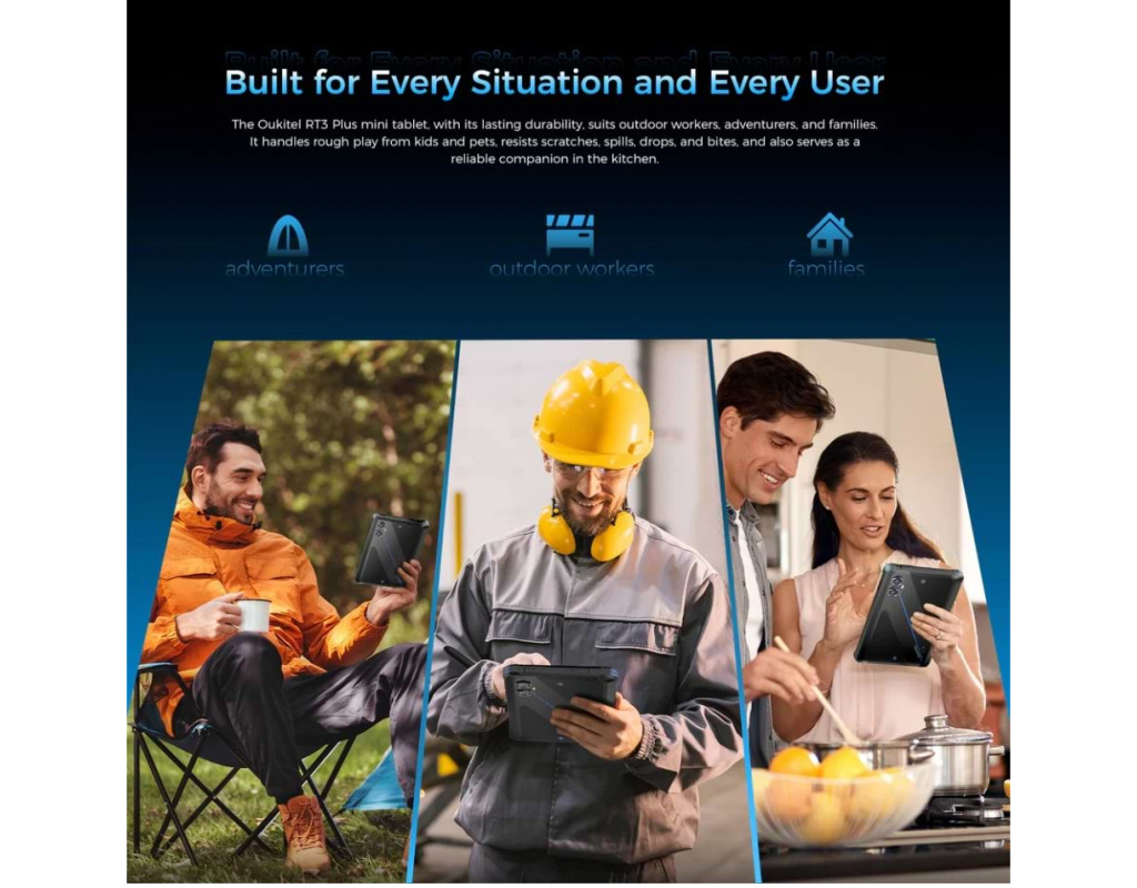 | Планшет OUKITEL RT3 Plus — це інноваційний пристрій, який поєднує в собі потужність, надійність і сучасний дизайн. Створений спеціально для користувачів, які цінують якість і довговічність, цей планшет стає ідеальним вибором для активного стилю життя і експлуатації в різних умовах. Однією з його головних переваг є захищений корпус, який дозволяє планшету без проблем витримувати складні умови експлуатації, будь то подорожі чи активація на природі. Незважаючи на міцність, OUKITEL RT3 Plus залишиться зручним і компактним завдяки своєму 8-дюймовому дисплею з IPS (PLS) матрицею. Роздільна здатність 1280 х 800 забезпечує яскраве і чітке зображення, що робить його ідеальним для перегляду мультимедійного контенту або роботи з документами. Під капотом планшет має потужний восьмиядерний процесор Mediatek Helio G81, який гарантує швидку і плавну роботу навіть за умови багатозадачного використання. Завдяки 4 ГБ оперативної пам'яті і 128 ГБ вбудованої пам'яті, користувачі зможуть зберігати всі необхідні дані без жодних затримок чи нестачі місця. Для тих, хто потребує ще більше простору, доступна опція розширення пам'яті за допомогою додаткової карти. OUKITEL RT3 Plus також підтримує використання двох SIM-карт, що дозволяє одночасно використовувати кілька операторів мобільного зв'язку. Це чудове рішення для тих, хто багато подорожує або бажає завжди залишатися на зв'язку. Вбудований модуль NFC підтримує безконтактні платежі, що значно спрощує виконання щоденних фінансових операцій. Наявність 3G та 4G LTE мереж забезпечує високошвидкісний доступ до інтернету. Модулі Wi-Fi та Bluetooth дозволяють легко підключатися до різних бездротових мереж та пристроїв. Вкрай корисною функцією для подорожуючих є багатофункціональна навігаційна система, яка підтримує GPS, ГЛОНАСС та Galileo, що допомагає без поміх орієнтуватися в просторі. Що стосується автономної роботи, то батарея ємністю в 11000 мАг забезпечує інтенсивну та стабільну роботу протягом тривалого часу. Це значить, що ви зможете працювати або розважатися без потреби частого підзаряджання, зосереджуючись тільки на найважливішому. Основна камера з роздільною здатністю 16 + 0.3 Мп гарантує якісні та чіткі знімки, що робить цей планшет чудовим вибором для збереження важливих моментів і розваг. Насолоджуйтеся можливістю ділитись яскравими подіями з близькими людьми, де б ви не знаходилися. OUKITEL RT3 Plus це оптимальний вибір для тих, хто не задовольняється компромісами в питаннях якості та багатофункціональності, при цьому зберігаючи компактність і міцність конструкції. |