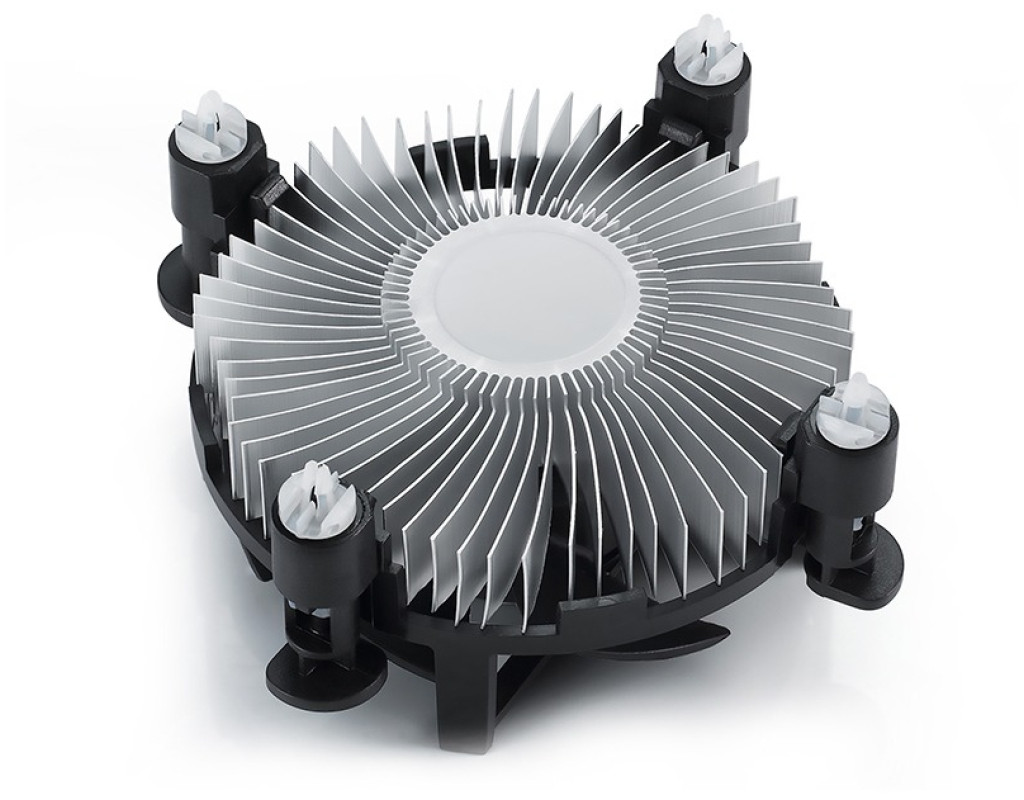 | Компактний кулер для процесора DeepCool сумісний із найпоширенішими сокетами Intel для холодних процесорів з TDP до 65 Вт включно. Швидкість обертання вентилятора становить 2200 обертів на хвилину за рівня шуму в 26.8 дБ. Радіатор кулера виготовлений з алюмінію. |