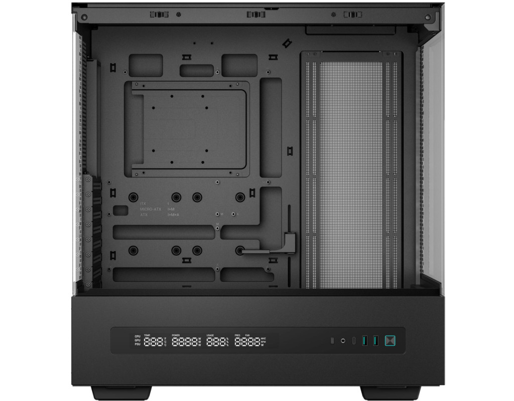 | DeepCool CH690 Digital - розроблений з урахуванням краси та адаптивності, оснащений напівскляною панеллю, яка забезпечує широкий огляд встановлених компонентів. Для тих, хто шукає покращену продуктивність, задня панель корпусу підтримує самостійні модифікації, що дозволяє користувачам замінити напівскляну панель сітчастою панеллю та кронштейном вентилятора для посилення горизонтального потоку повітря. Крім того, вбудований слот для світлової стрічки дозволяє додавати світлові стрічки для створення захопливої ігрової атмосфери, поєднуючи естетику з функціональністю для справді персоналізованої конфігурації. Корпус розроблений для виняткової універсальності, легко вміщуючи 180-мм блок живлення та 450-мм відеокарту. Він має до 8 окремих знімних слотів розширення, що забезпечує гнучкість для різних конфігурацій. Варіанти зберігання даних включають 1 відсік для 3.5-дюймового диска та 2 відсіки для 2.5-дюймових дисків, що забезпечує достатньо місця для потреб у зберіганні даних. Цей корпус розроблений для підтримки широкого спектру компонентів, що робить його ідеальним вибором як для ігор, так і для професійних систем. Корпус CH690 Digital оснащений передовим цифровим дисплеєм, який забезпечує моніторинг життєво важливої статистики системи в режимі реального часу. Завдяки перемиканню режимів для процесора, графічного процесора та блоку живлення, ви можете легко відстежувати температуру у Фаренгейтах або Цельсіях, споживання енергії, використання та частоту. Режим процесора також включає моніторинг швидкості обертання вентиляторів, а режим блоку живлення надає додаткову інформацію про їхню продуктивність. Цей складний дисплей перетворює систему на високотехнологічний командний центр, забезпечуючи оптимальну продуктивність та ефективність з першого погляду. Корпус розроблений для зручності та довговічності, оснащений регульованим тримачем відеокарти, який забезпечує необхідну підтримку, запобігаючи провисанню відеокарти та пошкодженню материнської плати. Його порти введення/виведення включають два порти USB 3.0, аудіороз’єм та USB Type-C, що забезпечує легкий доступ до зовнішніх пристроїв. CH690 Digital також підтримує материнські плати з заднім роз’ємом завдяки великій ширині 36.5 мм для зручного управління кабелями. Крім того, нижня частина корпусу оснащена магнітним повітряним фільтром, що забезпечує легке очищення та ефективний захист від пилу. |
