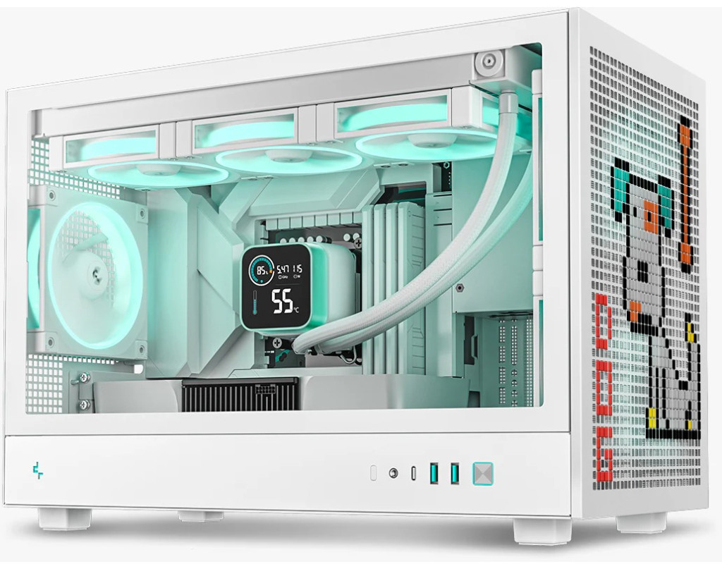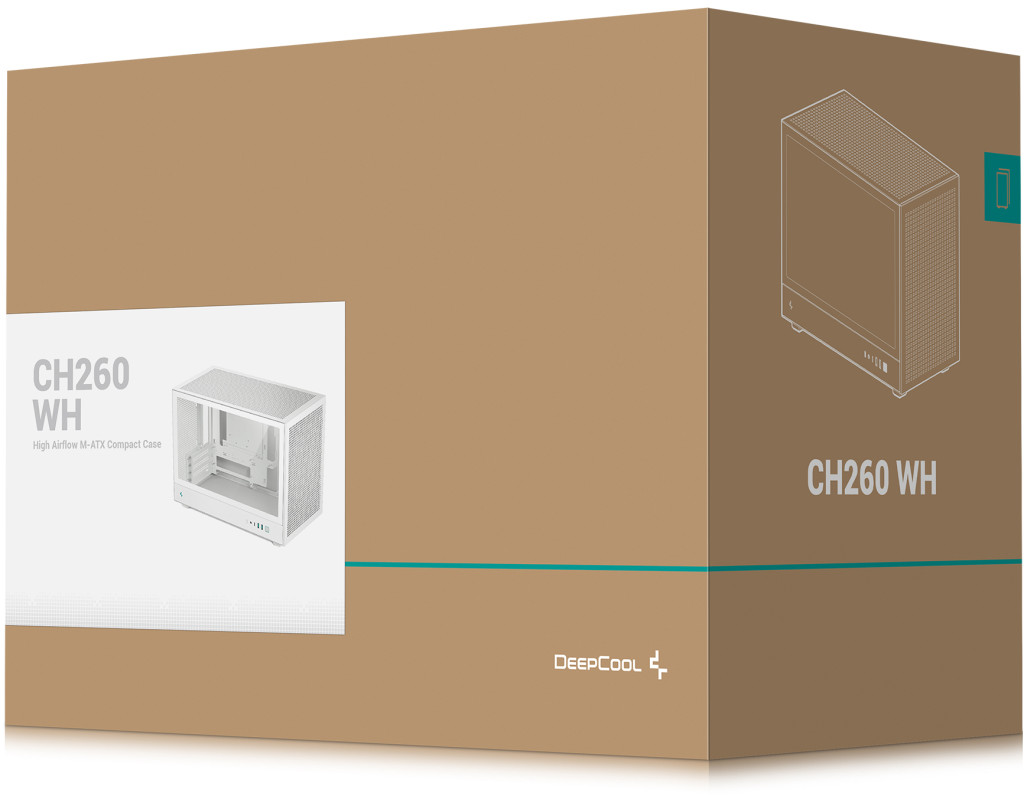 | Корпус DeepCool CH260 оснащений бічною панеллю із загартованого скла, що надає вашому внутрішньому обладнанню сучасного вигляду, перфоровані верхню та передню панелі можна прикрасити гумовими накладками PIXEL. Корпус також відповідає зростаючим вимогам до материнських плат із заднім роз’ємом завдяки ширшому зазору 29.6 мм на задній панелі.
