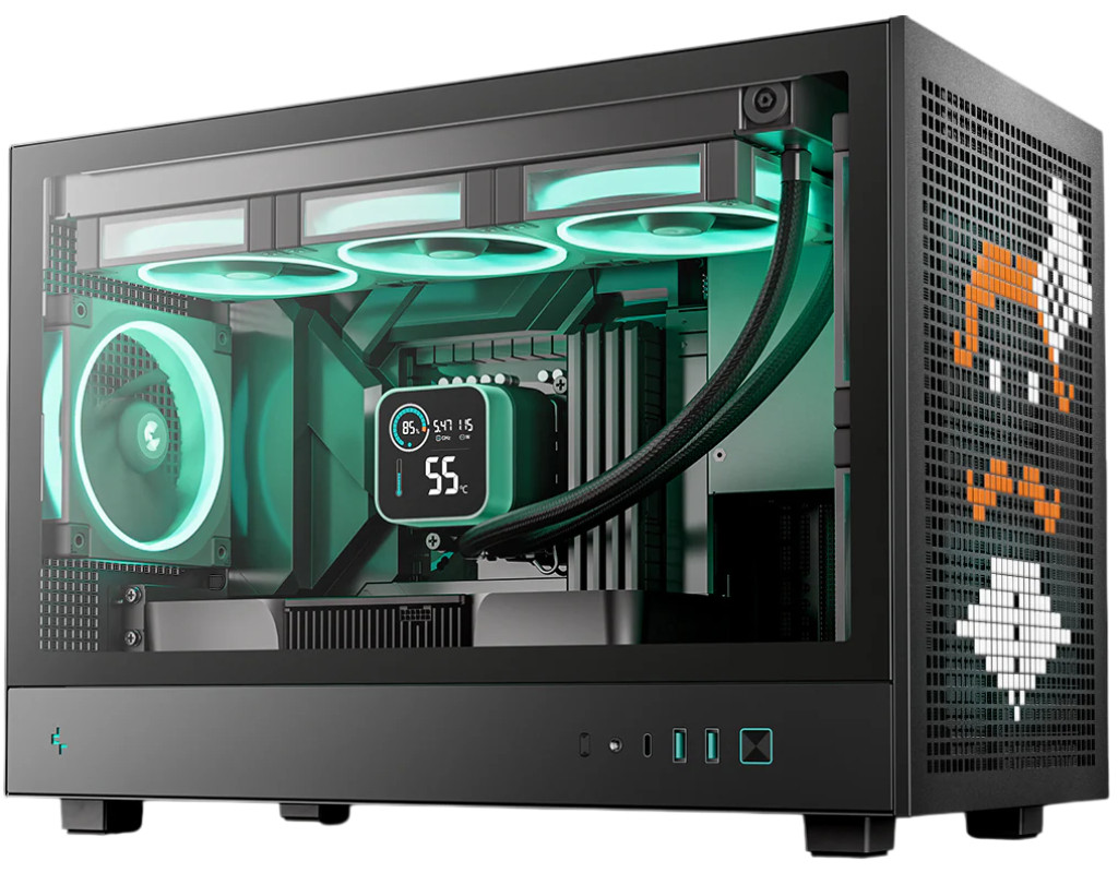 | Корпус DeepCool CH260 оснащений бічною панеллю із загартованого скла, що надає вашому внутрішньому обладнанню сучасного вигляду, перфоровані верхню та передню панелі можна прикрасити гумовими накладками PIXEL. Корпус також відповідає зростаючим вимогам до материнських плат із заднім роз’ємом завдяки ширшому зазору 29.6 мм на задній панелі.