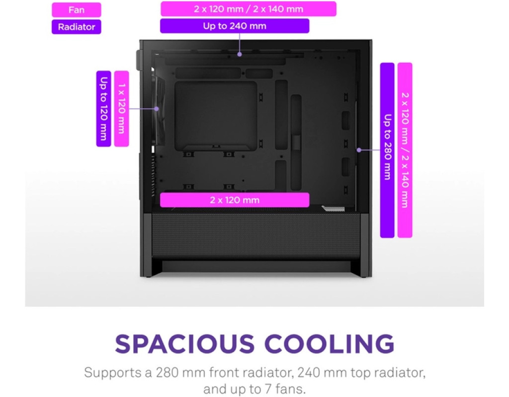 | Корпус для ПК NZXT H3 Flow All Black (CC-H31FB-01) представляє собою зразок сучасного підходу до поєднання естетики та передових технологій. Це ідеальне рішення для користувачів, які цінують мінімалістичний дизайн і прагнуть створити неперевершену систему для робочих задач чи ігор. Конструкція корпусу розроблена для зручності встановлення та надійності в експлуатації. Знімні панелі дозволяють швидкий доступ до всіх внутрішніх компонентів, спрощуючи не лише монтаж, але й обслуговування системи. Внутрішній простір оптимізовано для легкого складання і модифікації під різноманітні потреби — від офісного комп'ютера до високопродуктивної ігрової машини. NZXT H3 Flow підтримує широкий спектр материнських плат: Mini-ITX, micro-ATX, що робить його універсальним вибором для різних конфігурацій. Кількість внутрішніх відсіків (2 х 3.5" та 3 х 2.5") дозволяє організувати зберігання даних з урахуванням індивідуальних побажань і вимог. А сім слотів розширення дають можливість збільшити функціональність ПК, залежно від потреб. Окремої уваги заслуговує система охолодження корпусу. Оснащений трьома вентилями розміром 120 мм, H3 Flow забезпечує ефективне охолодження компонентів, зберігаючи стабільність роботи системи навіть під значним навантаженням. Крім того, за наявності пилового фільтра, вентилятори гарантують чистоту внутрішніх частин, продовжуючи термін їх служби. Ще однією перевагою цього корпусу є можливість встановлення рідинного охолодження, що додає йому адаптивності та дозволяє налаштовувати за вашим запитом. Важливу роль відіграє й підтримка довгих відеокарт до 400 мм, а це означає, що ви зможете підлаштувати систему під найвимогливіші графічні задачі. На фронтальній панелі зручно розташовані зовнішні роз'єми: 2 x USB 2.0 і 2 x Audio, що забезпечує простоту підключення і взаємодії з периферійними пристроями, полегшуючи щоденне користування. Розміри корпусу — 210 х 450 х 470 мм, а вага всього 6.5 кг, що робить його не тільки стильним, але й компактним та зручним у транспортуванні. Чорний колір підкреслює сучасний дизайн і дозволяє йому гармонійно вписатися у будь-який інтер'єр, надаючи вашому простору відчуття технічної досконалості. NZXT H3 Flow All Black — це розробка, яка втілює високу якість, детально продуману ергономіку та функціональність. Це не просто корпус — це надійна основа для створення збалансованої, продуктивної системи, яка приносить задоволення від кожної хвилини її використання. Цей корпус стане гідним вибором для тих, хто цінує інновації та прагне бути на крок попереду в галузі комп’ютерних технологій. |