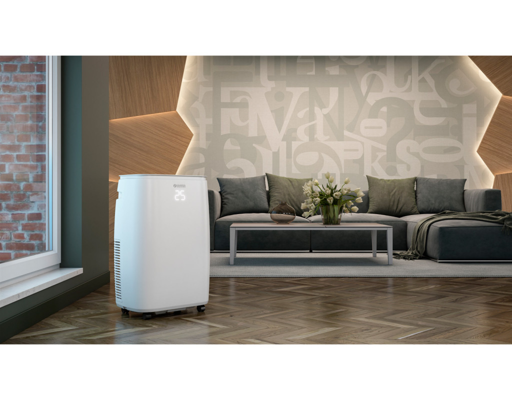 Мобільний кондиціонер Olimpia Splendid DOLCECLIMA BREZZA 9 EQ WIFI Оцініть надзвичайну тишу з портативним кондиціонером Olimpia Splendid DOLCECLIMA BREZZA 9 EQ. Звуковий тиск пристрою становить всього 58 дБ, тоді як максимальна гучність в режимі найвищої потужності складає 68 дБ. Кондиціонер простий у керуванні, має функції нагрівання, охолодження, осушення та вентиляції, які можна налаштувати через мобільний додаток або голосовими командами.