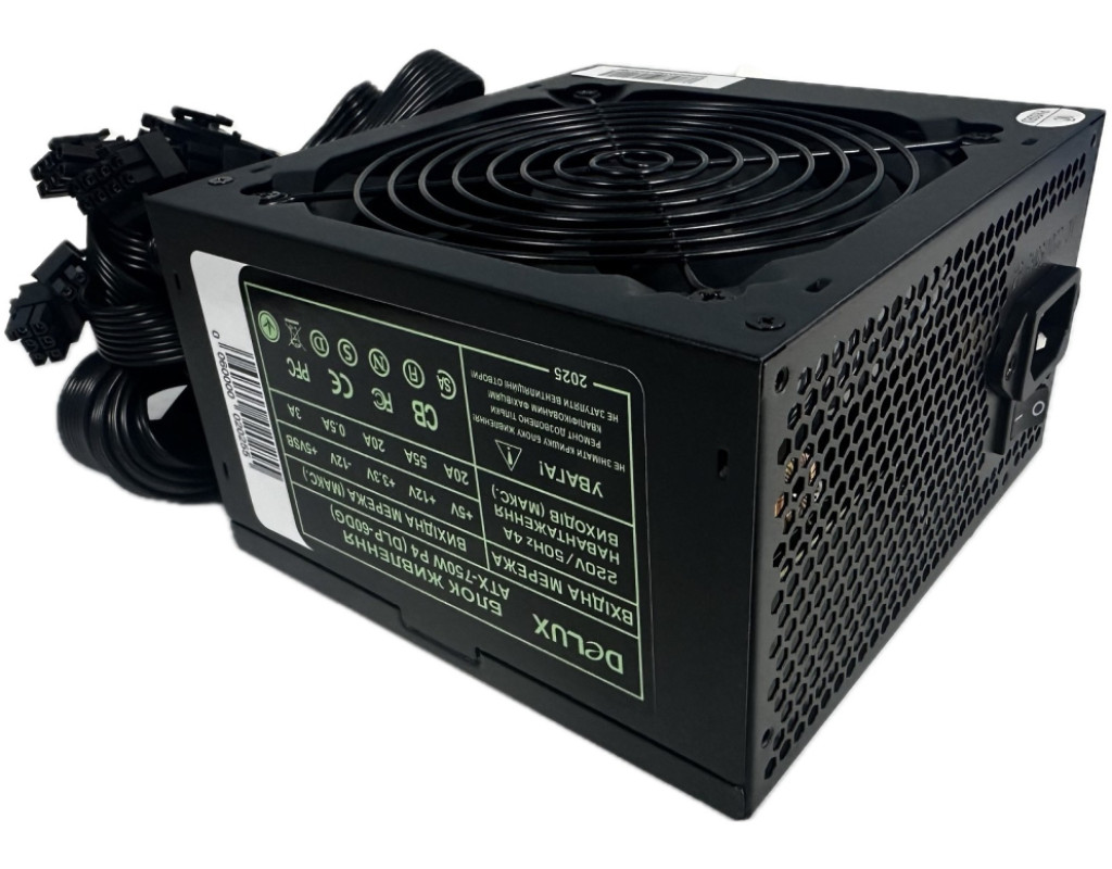 | Модель Delux 750W (DLP60DG) зробить ваш персональний комп’ютер по-справжньому надійним та довговічним. Цей блок живлення чудово справляється з функціями вторинного джерела живлення для інтегрованих та дискретних графічних адаптерів, а також інших пристроїв, встановлених у ПК. Завдяки активній системі PFC пристрій не перегрівається під час автоматичного компенсування потужності. У конструкції передбачені роз’єми під лінії резервного підживлення відеоадаптерів. Також є достатня кількість входів для процесора та материнської плати, Peripheral, SATA. Експлуатаційний ресурс є вельми значним. Завдяки роботі вбудованого лопатевого кулера та вентиляційної перфорації забезпечується підтримання температури під корпусом на рівні, необхідному для коректної роботи внутрішніх вузлів блоку живлення. |