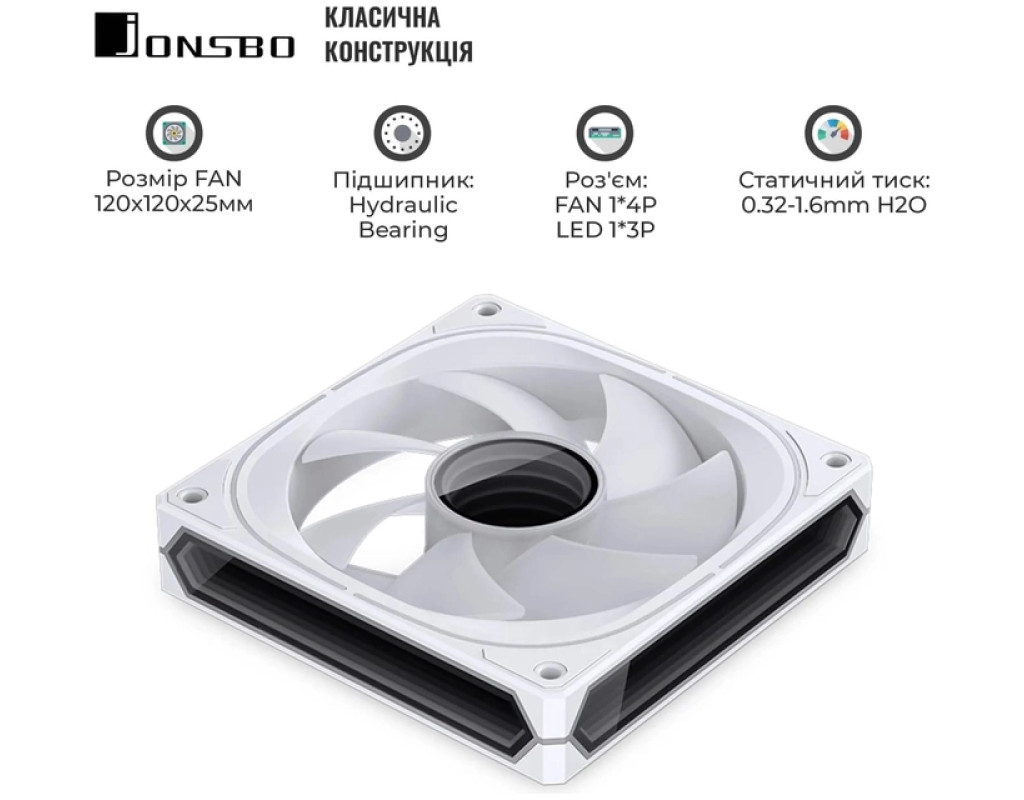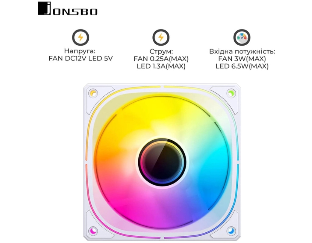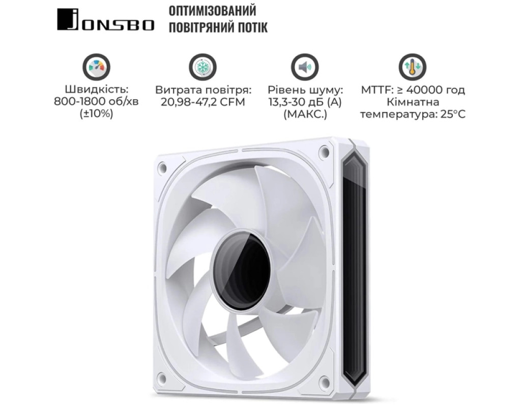 Jonsbo FR-505W ARGB White – це високоякісний 120 мм вентилятор з адресним RGB підсвічуванням, що забезпечує ефективне охолодження та стильний зовнішній вигляд. З частотою обертання від 800 до 1800 об/хв та рівнем шуму від 13.3 до 30 дБ(A), він ідеально підходить для тихих та продуктивних систем. Вентилятор оснащений міцними підшипниками з довговічністю до 40 000 годин, а повітряний потік його досягає 47.2 CFM. Білий корпус та яскраве підсвічування роблять його відмінним вибором для будь-яких модульних ПК. |