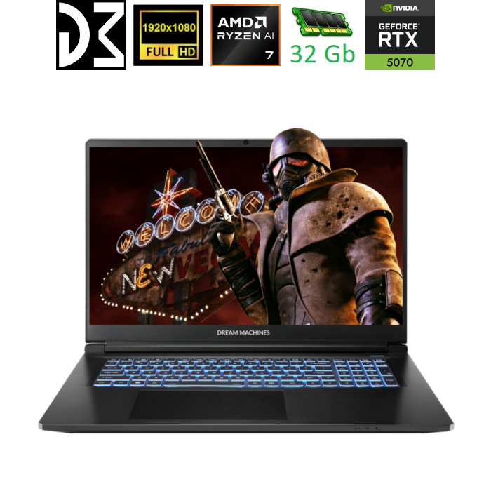 Це машина переможця. Дозвольте собі гру найвищої якості при повній деталізації і гладкості геймплею. Найпотужніші карти, процесори і унікальні рішення для охолодження. Ви знайдете все це в ноутбуках Dream Machines! NVIDIA GeForce RTX5070 8GB Графічні процесори GeForce RTX 50 для ноутбуків на базі NVIDIA Blackwell відкривають геймерам і творцям революційні можливості. Серія RTX 50, оснащена потужними можливостями штучного інтелекту, забезпечує нові враження та якість графіки нового рівня. Збільште продуктивність за допомогою NVIDIA DLSS 4, створюйте зображення з безпрецедентною швидкістю та розкрийте свій творчий потенціал за допомогою NVIDIA Studio. Чому для ігор важливий TGP? TGP (Total Graphics Power) — це максимальна потужність, яку може використовувати графічна карта (GPU) в ноутбуці. Вона впливає на швидкість і якість зображення в іграх та програмах. Чим вищий TGP, тим швидше працює графіка, що дозволяє грати в нові ігри на високих налаштуваннях і краще працювати з відео та графікою. Навіть однакові моделі відеокарт у різних ноутбуках можуть мати різне значення TGP, що означає різну продуктивність. Тому, вибираючи ноутбук для ігор чи роботи з графікою, важливо звертати увагу на TGP — це допоможе знайти модель з більшою потужністю і кращими результатами. Нехай потужність 115W завжди забезпечить вам максимально можливу продуктивність! AMD Ryzen AI 7 350 Процесори AMD Ryzen забезпечують найвищу продуктивність для ігор, роботи та творчості. Завдяки передовим технологіям і високій енергоефективності, вони легко справляються з будь-якими завданнями - від запуску сучасних ігор на максимальних налаштуваннях до обробки складного контенту. Вбудований AI-модуль дозволить вам повністю розкрити всі переваги програмного забезпечення розрахованого на роботу зі штучним інтелектом. Екран, створений для геймерів Відчуй кожну деталь віртуального світу завдяки екрану, створеному спеціально для геймерів. Висока частота оновлення, миттєвий відгук і яскраві кольори дадуть тобі перевагу в кожній грі. Надійність, перевірена роками DDR5 — це найсучасніша технологія у світі оперативної пам'яті! Ще більша пропускна здатність, нижче енергоспоживання та блискавична швидкість роботи роблять ваш ноутбук готовим до найвимогливіших завдань. Незалежно від того, граєте ви, створюєте контент чи працюєте – DDR5 забезпечить вам максимальну продуктивність і плавність роботи. Обирайте сучасні технології та відчуйте різницю! Прискорення даних Підвищуйте продуктивність свого ноутбука завдяки ультрашвидким SSD-накопичувачам M.2. Блискавичний запуск системи, миттєвий доступ до даних і надійність на роки — усе це завдяки сучасним технологіям зберігання. Ми співпрацюємо з провідними брендами, такими як Samsung, Patriot і Kingston, щоб забезпечити вам максимальну швидкість і комфорт роботи! Чим більше портів, тим краще Ноутбуки Dream Machines вражають передовою функціональністю портів для зручного підключення периферійних пристроїв. Вони оснащені різноманітними портами, такими як HDMI, DisplayPort, USB 3.2 Gen 2, USB Type-C, Gigabit LAN, а також традиційними роз'ємами для підключення мікрофонів та навушників. Це надає користувачам широкий спектр можливостей для роботи та розваг, роблячи ноутбуки Dream Machines відмінними компаньйонами для всіх їх потреб. Dream Cooling – щоб було холодніше Для кожного геймера охолодження є одним з ключових аспектів під час вибору ігрового ноутбук