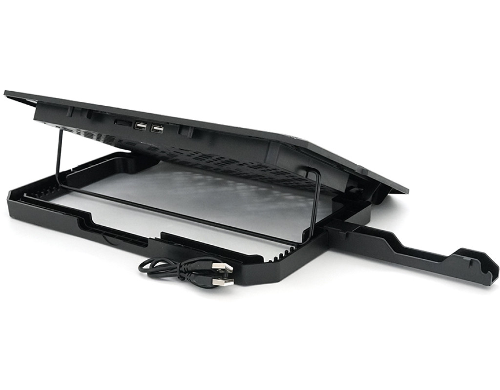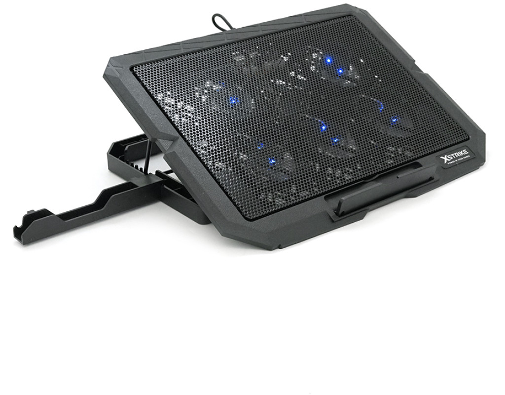 Підставка під ноутбук XSTRIKE XS-55, 10-17", 5*70мм 2200±10% RPM, корпус пластик+алюміній, 2xUSB 2.0, 356x259x28mm, RGB, Box Q20