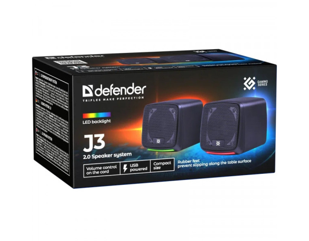 Стильні стереоколонки Defender J3 Black для ПК та ноутбука з LED-підсвічуванням