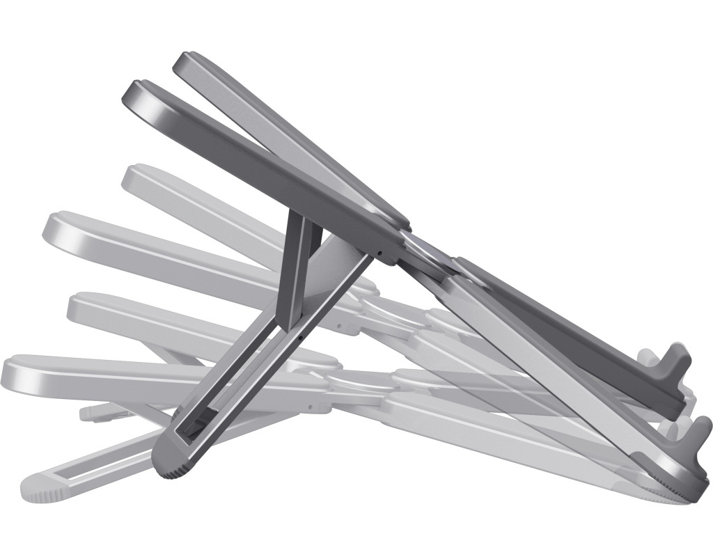 Надійне захоплення, відсутність ковзання Забезпечте безпеку та збереження вашого ноутбука під час роботи за допомогою Macy. Ця складна алюмінієва підставка для ноутбука з повністю прогумованою протиковзкою поверхнею для додаткової стійкості підходить для ноутбуків з діагоналлю до 17 дюймів та вагою до 20 кг.