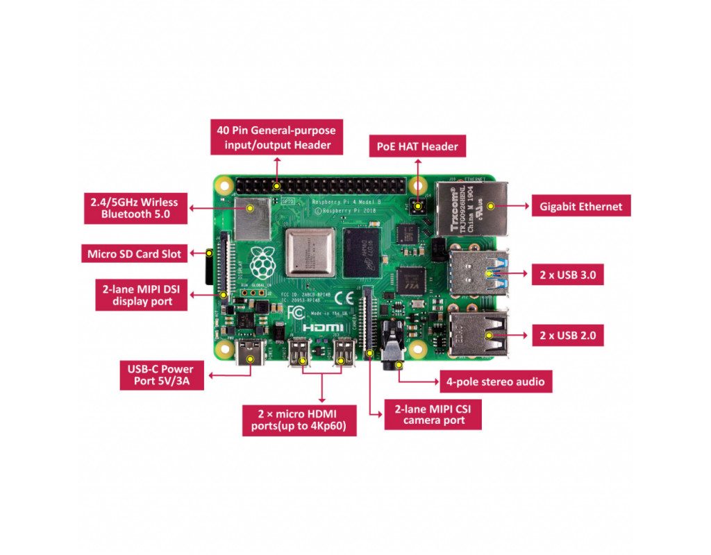 Мікрокомп'ютер Raspberry Pi 4 Model B - це новий продукт в популярному ряду мікрокомп'ютерів Raspberry Pi. Плата несе в собі досить багато удосконалень: підвищення швидкості роботи процесора, поліпшена продуктивність мультимедійного модуля, збільшення кількості та швидкості оперативної пам'яті і оновлені мережеві модулі в порівнянні з попереднім поколінням Raspberry PI 3 Model B, при цьому збережено рівень енергоспоживання і сумісність периферійних модулів. Для кінцевого користувача, Raspberry Pi 4 Model B забезпечує продуктивність стаціонарних рішень початкового рівня на архітектурі X86. Ключовими характеристиками даного продукту є новий, високопродуктивний 64-розрядний чотирьох ядерний процесор, підтримка двох дисплеїв з роздільною здатністю до 4k через пару micro-HDMI портів, апаратне декодування відео в 4Kp60, від 1-го до 8-ми Гб оперативної пам'яті (в залежності від обраної моделі), двухдиапазонная бездротова мережа на 2,4 і 5,0 ГГц, Bluetooth 5.0, Gigabit Ethernet, два порти USB 3.0 і PoE (за допомогою окремого модуля PoE HAT). Двоканальна безпровідна LAN і Bluetooth мають модульну сертифікацію, дозволяючи платі використовуватися в кінцевих продуктах зі значно спрощеним тестуванням на відповідність стандартам, покращуючи як вартість, так і час виходу на ринок. |