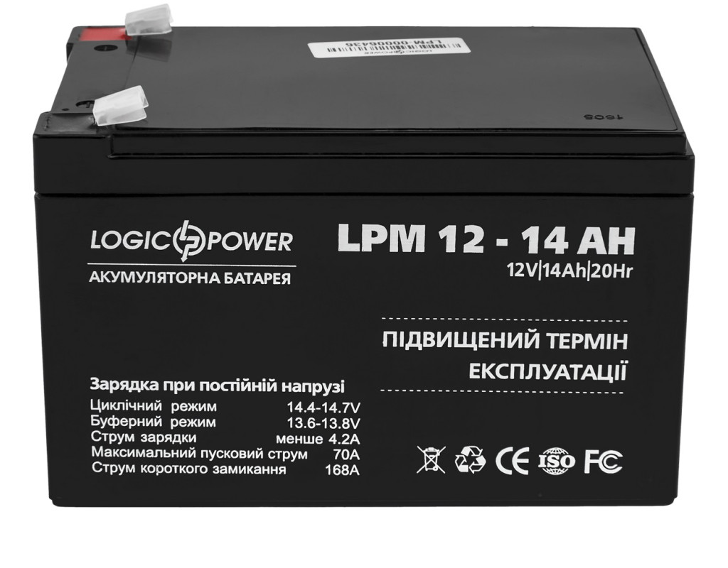 | Свинцево-кислотний акумулятор LPM 12 - 14 AH - це оптимальне рішення якщо вам необхідно надійне і доступне за своєю ціною пристрій для забезпечення безперебійного живлення вашої техніки. Представлена ??модель кислотного акумулятора виконана із застосуванням сучасної технології AGM (Absorbent Glass Mat), завдяки чому кислотний АКБ LPM 12 - 14 AH надійніший в експлуатації і відрізняється від своїх попередників більш тривалим терміном служби. Основні характеристики LPM 12 - 14 AH: - Тип акумулятора: свинцево - кислотний (AGM технологія) - Номінальна напруга: 12V - Ємність АКБ: 14 Ah - Температура зберігання: -20 ° С - + 50 ° С - Робоча температура: + 25 ° з +/- 5 ° С Одним з переваг акумулятора LPM 12 - 14 AH є його універсальність і високий рівень безпеки для користувачів за рахунок герметичного корпусу, виконаного з високоміцного пластика. |