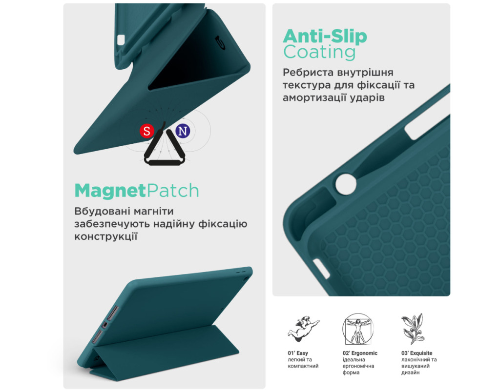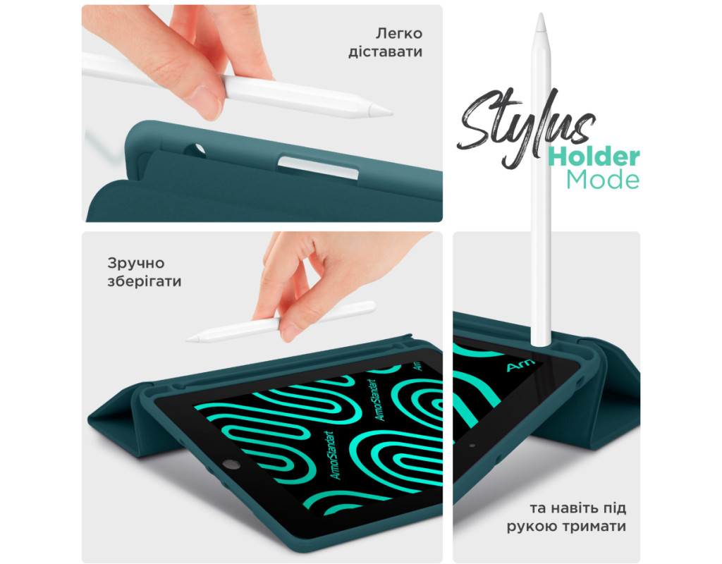 Чохол ArmorStandart Smart Fold Pen – є функціональним та надійним рішенням для вашого планшета. Цей чохол вирізняється не лише своєю практичністю, але й багатофункціональністю. Виготовлений з високоякісного матеріалу, чохол з м'якого поліуретану (TPU) забезпечує надійний захист вашого планшета від подряпин і ударів, а кришка із штучної шкіри (PU) додає довговічності. Інтегрований слот для зберігання стилуса робить цей чохол ідеальним вибором для тих, хто цінує зручність і порядок. ArmorStandart Smart Fold Pen пропонує вам два зручних кути огляду. Використовуйте його як підставку для комунікації в FaceTime або для перегляду улюблених фільмів в режимі розслаблення. Функція Wake/Sleep працює таким чином: коли кришка чохла відкрита, планшет автоматично виходить з режиму сну, а коли кришка закривається, планшет "засинає". Це додає до чохла додаткової функціональності та зберігає заряд батареї. З ArmorStandart Smart Fold Pen ваш планшет не лише захищений, але і стає зручним інструментом для різноманітних щоденних задач. Оберіть надійність та практичність - оберіть ArmorStandart Smart Fold Pen для вашого планшета сьогодні. Особливості: