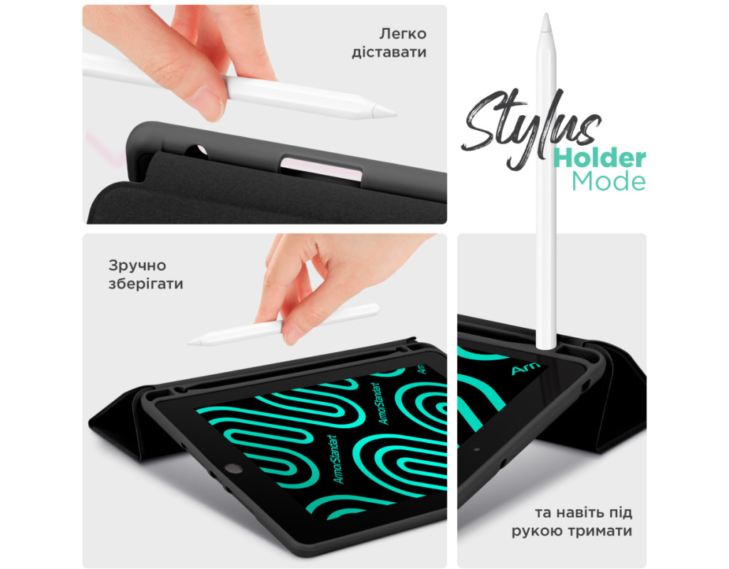 Чохол ArmorStandart Smart Fold Pen – є функціональним та надійним рішенням для вашого планшета. Цей чохол вирізняється не лише своєю практичністю, але й багатофункціональністю. Виготовлений з високоякісного матеріалу, чохол з м'якого поліуретану (TPU) забезпечує надійний захист вашого планшета від подряпин і ударів, а кришка із штучної шкіри (PU) додає довговічності. Інтегрований слот для зберігання стилуса робить цей чохол ідеальним вибором для тих, хто цінує зручність і порядок. ArmorStandart Smart Fold Pen пропонує вам два зручних кути огляду. Використовуйте його як підставку для комунікації в FaceTime або для перегляду улюблених фільмів в режимі розслаблення. Функція Wake/Sleep працює таким чином: коли кришка чохла відкрита, планшет автоматично виходить з режиму сну, а коли кришка закривається, планшет "засинає". Це додає до чохла додаткової функціональності та зберігає заряд батареї. З ArmorStandart Smart Fold Pen ваш планшет не лише захищений, але і стає зручним інструментом для різноманітних щоденних задач. Оберіть надійність та практичність - оберіть ArmorStandart Smart Fold Pen для вашого планшета сьогодні. Особливості: