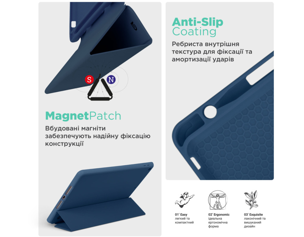 Важливо: чохол обладнаний вбудованим слотом для зберігання стилуса, однак не підтримує функцію наскрізної бездротової зарядки стилуса через корпус планшета. Для заряджання стилус необхідно витягати планшет з чохла та під’єднувати відповідно до рекомендацій виробника. |