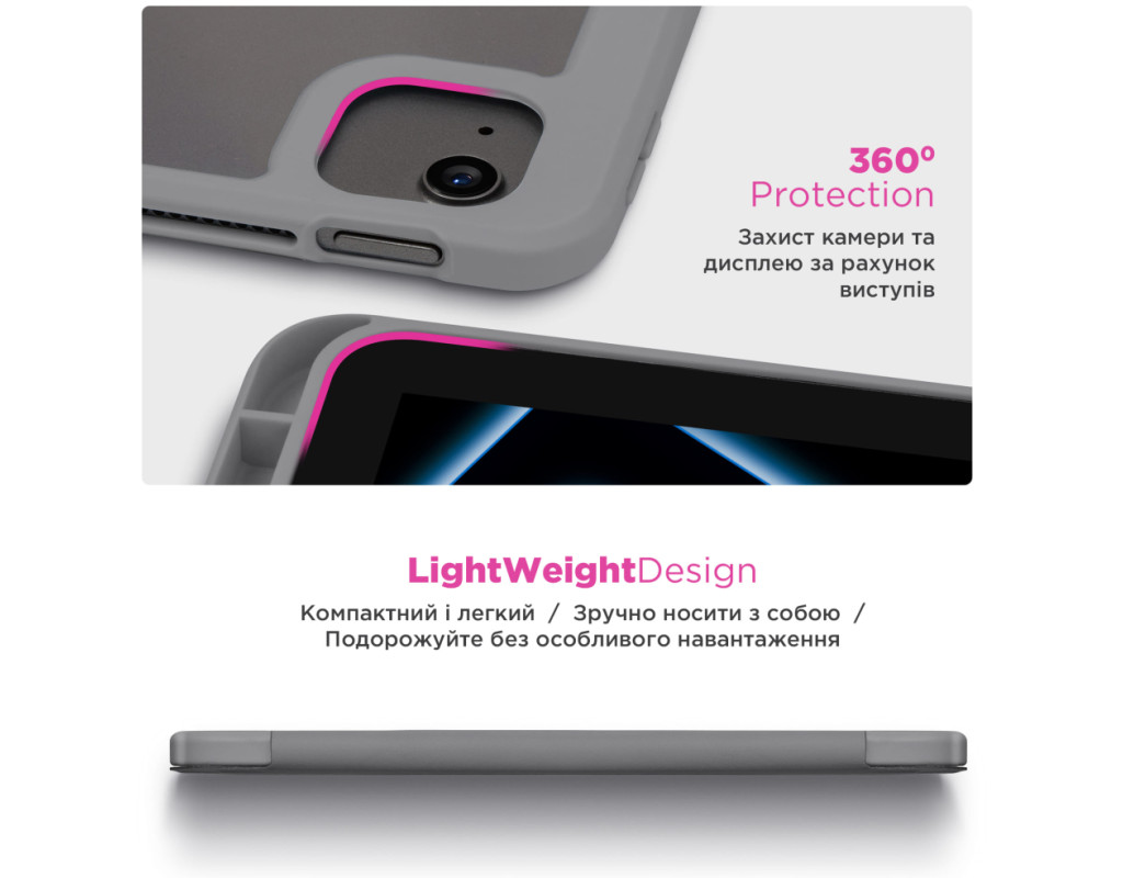 Чохол ArmorStandart Y-Type PEN для iPad поєднує захист і функціональність, створений для зручного використання планшета в будь-яких умовах. Вбудований слот для стилуса забезпечує безпечне зберігання Apple Pencil, щоб він завжди був під рукою. Завдяки продуманій конструкції чохол легко трансформується у підставку з двома оптимальними кутами огляду, ідеальними для відеодзвінків у FaceTime або перегляду фільмів. Це забезпечує зручність під час використання планшета як для роботи, так і для відпочинку. Чохол також підтримує функцію Wake/Sleep, яка автоматично пробуджує планшет під час відкриття та переводить його у режим сну після закриття, що зберігає заряд батареї. Матеріали, з яких виготовлений чохол, забезпечують надійний захист планшета. Передня панель виконана з якісної PU шкіри, що приємна на дотик і стійка до зносу. Прозора задня спинка з акрилу не лише захищає пристрій, але й дозволяє демонструвати оригінальний дизайн планшета, а бокові сторони з гнучкого TPU забезпечують додаткову амортизацію при ударах. Особливості: