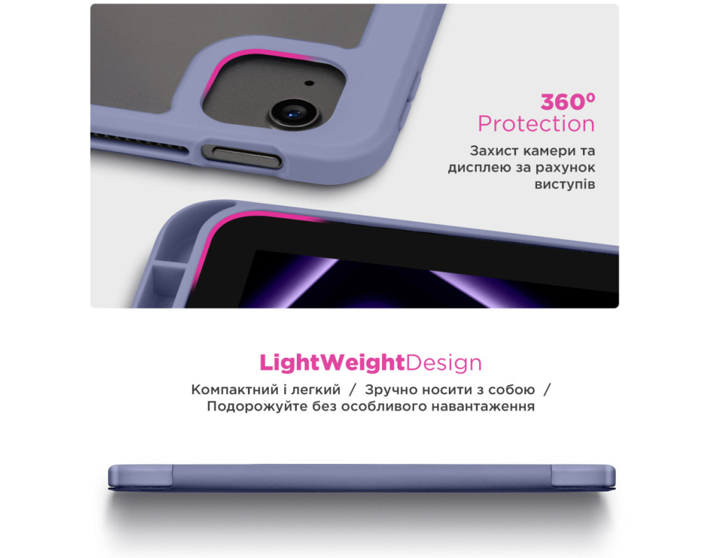 Чохол ArmorStandart Y-Type PEN для iPad поєднує захист і функціональність, створений для зручного використання планшета в будь-яких умовах. Вбудований слот для стилуса забезпечує безпечне зберігання Apple Pencil, щоб він завжди був під рукою. Завдяки продуманій конструкції чохол легко трансформується у підставку з двома оптимальними кутами огляду, ідеальними для відеодзвінків у FaceTime або перегляду фільмів. Це забезпечує зручність під час використання планшета як для роботи, так і для відпочинку. Чохол також підтримує функцію Wake/Sleep, яка автоматично пробуджує планшет під час відкриття та переводить його у режим сну після закриття, що зберігає заряд батареї. Матеріали, з яких виготовлений чохол, забезпечують надійний захист планшета. Передня панель виконана з якісної PU шкіри, що приємна на дотик і стійка до зносу. Прозора задня спинка з акрилу не лише захищає пристрій, але й дозволяє демонструвати оригінальний дизайн планшета, а бокові сторони з гнучкого TPU забезпечують додаткову амортизацію при ударах. Особливості: