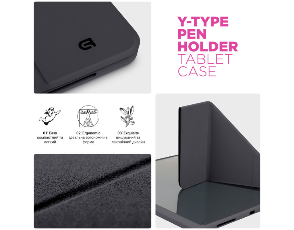 Чохол ArmorStandart Y-Type PEN для iPad поєднує захист і функціональність, створений для зручного використання планшета в будь-яких умовах. Вбудований слот для стилуса забезпечує безпечне зберігання Apple Pencil, щоб він завжди був під рукою. Завдяки продуманій конструкції чохол легко трансформується у підставку з двома оптимальними кутами огляду, ідеальними для відеодзвінків у FaceTime або перегляду фільмів. Це забезпечує зручність під час використання планшета як для роботи, так і для відпочинку. Чохол також підтримує функцію Wake/Sleep, яка автоматично пробуджує планшет під час відкриття та переводить його у режим сну після закриття, що зберігає заряд батареї. Матеріали, з яких виготовлений чохол, забезпечують надійний захист планшета. Передня панель виконана з якісної PU шкіри, що приємна на дотик і стійка до зносу. Прозора задня спинка з акрилу не лише захищає пристрій, але й дозволяє демонструвати оригінальний дизайн планшета, а бокові сторони з гнучкого TPU забезпечують додаткову амортизацію при ударах. Особливості: