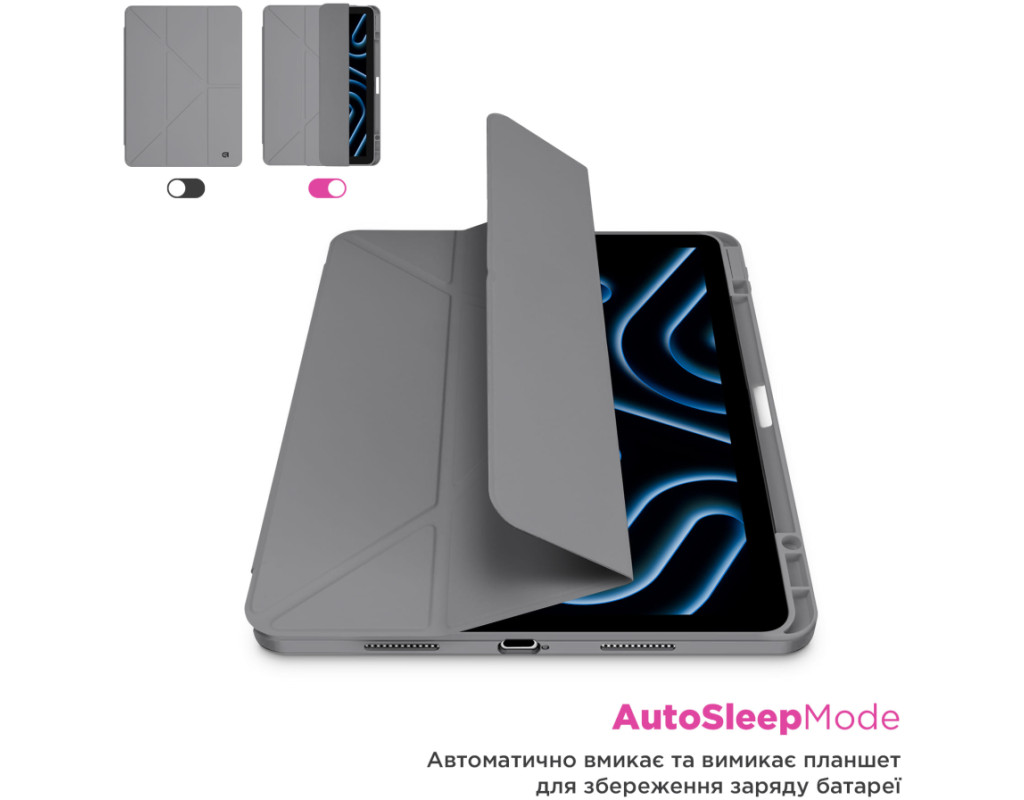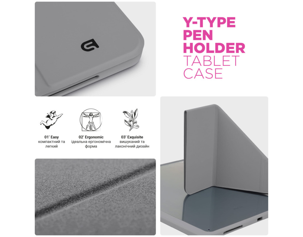 Чохол ArmorStandart Y-Type PEN для iPad поєднує захист і функціональність, створений для зручного використання планшета в будь-яких умовах. Вбудований слот для стилуса забезпечує безпечне зберігання Apple Pencil, щоб він завжди був під рукою. Завдяки продуманій конструкції чохол легко трансформується у підставку з двома оптимальними кутами огляду, ідеальними для відеодзвінків у FaceTime або перегляду фільмів. Це забезпечує зручність під час використання планшета як для роботи, так і для відпочинку. Чохол також підтримує функцію Wake/Sleep, яка автоматично пробуджує планшет під час відкриття та переводить його у режим сну після закриття, що зберігає заряд батареї. Матеріали, з яких виготовлений чохол, забезпечують надійний захист планшета. Передня панель виконана з якісної PU шкіри, що приємна на дотик і стійка до зносу. Прозора задня спинка з акрилу не лише захищає пристрій, але й дозволяє демонструвати оригінальний дизайн планшета, а бокові сторони з гнучкого TPU забезпечують додаткову амортизацію при ударах. Особливості: