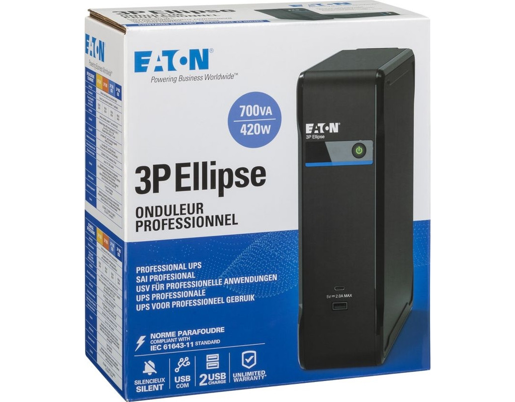 | Пристрій безперебійного живлення Eaton 3P700UD - це надійний захисник вашого електронного обладнання, який забезпечує стабільну та безпечну роботу навіть під час перебоїв електропостачання. Завдяки своїм характеристикам, цей UPS (Uninterruptible Power Supply) є ідеальним вибором для дому та малого офісу. Цей резервний (off line) пристрій безперебійного живлення забезпечує потужність в 420 Вт та 700 В*А, що дозволяє підключати різноманітне побутове та офісне обладнання. Завдяки функціонуванню за принципом резервного джерела живлення, Eaton 3P700UD швидко перемикається з мережі на батарейне живлення у разі раптового відключення електропостачання, захищаючи вашу техніку від втрачених даних та апаратних збоїв. Однією з вагомих переваг цього UPS є його здатність працювати в широкому діапазоні вхідних напруг - від 184 до 264 В. Це означає стабільну роботу в умовах нестабільної електромережі. Пристрій оснащений вихідною формою напруги у вигляді апроксимованої (ступінчастої) синусоїди, що є ефективним для більшості пристроїв, забезпечуючи їм захист від короткочасних коливань напруги. Eaton 3P700UD має можливість підключення зовнішньої акумуляторної батареї напругою 12 В, що дає змогу збільшити час резервного живлення за потреби. Вбудована батарея на 12V / 7AH x 1 забезпечує базову автономність, але з можливістю розширення, захищаючи вас від раптових відключень електроенергії на критично важливих етапах роботи. Завдяки наявності 4 Euro-розеток (Schuko), ви можете легко підключити декілька пристроїв одночасно, забезпечуючи їх надійне живлення навіть під час відсутності електрики. Крім того, інтерфейс підключення USB дозволяє з легкістю керувати UPS та стежити за його станом через комп'ютер, що додає зручності у використанні. Eaton 3P700UD - це не просто пристрій для забезпечення безперебійного живлення, це ваша гарантія безпеки та стабільності вітчизняного обладнання. Вибираючи цей UPS, ви отримуєте високу якість, надійність та додаткову впевненість у роботі електронних пристроїв. |