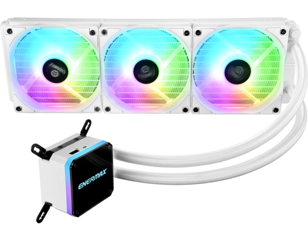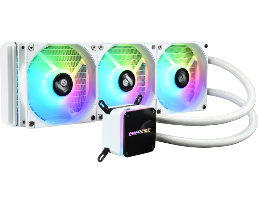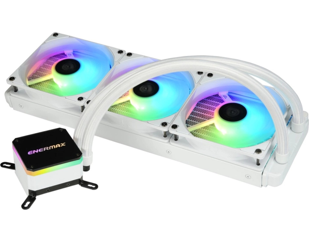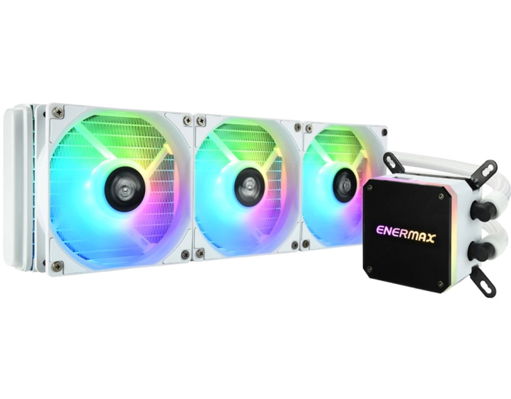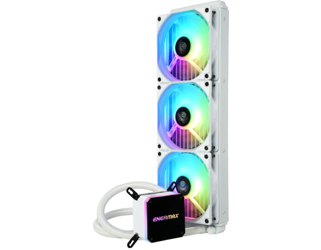 Успішна серія Liqmax тепер нарешті має освітлення RGB. Водоблок з акриловим ефектом має дизайн Aurabelt, який забезпечує яскраві світлові ефекти. Liqmax III RGB підтримує синхронізацію з материнськими платами, що мають 4-контактні роз'єми RGB (+ 12В/G/R/B). Завдяки запатентованій двокамерній конструкції ENERMAX, центральному входу охолоджувальної рідини (CCI) і технології шунтування каналів (SCT) кулер забезпечує швидше теплопередавання та збільшений термін експлуатації. Вентилятори RGB з двома опуклими лопатями оптимізовані для радіаторів і генерують високий статичний тиск для відведення тепла з охолоджувальних ребер.