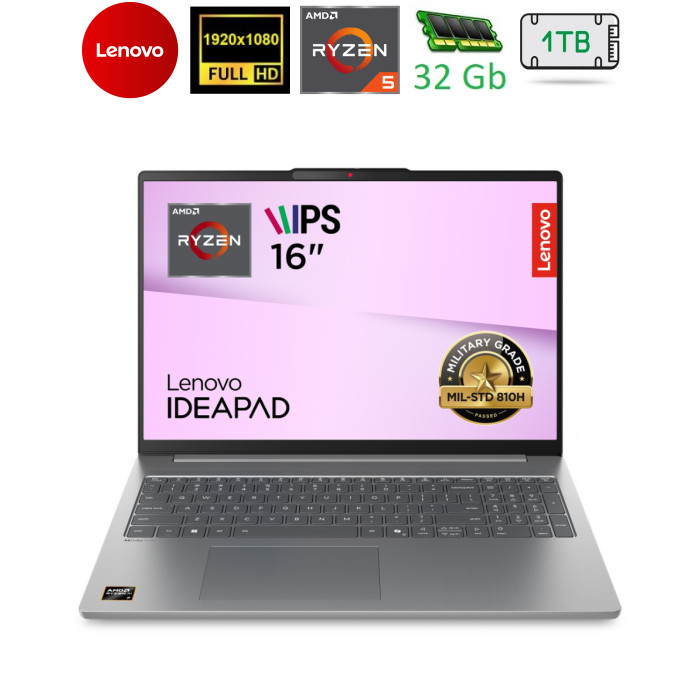Ноутбук IdeaPad Slim 5 16ARP10, протестований на відповідність вимогам стандартів MIL-STD-810H, створений для екстремальних умов експлуатації. Приєднуйся до конференц-дзвінка на пляжі, внось зміни в свою презентацію або ж редагуй фотографії по дорозі додому — цей ноутбук забезпечить найвищий рівень надійності та не підведе за жодних обставин.