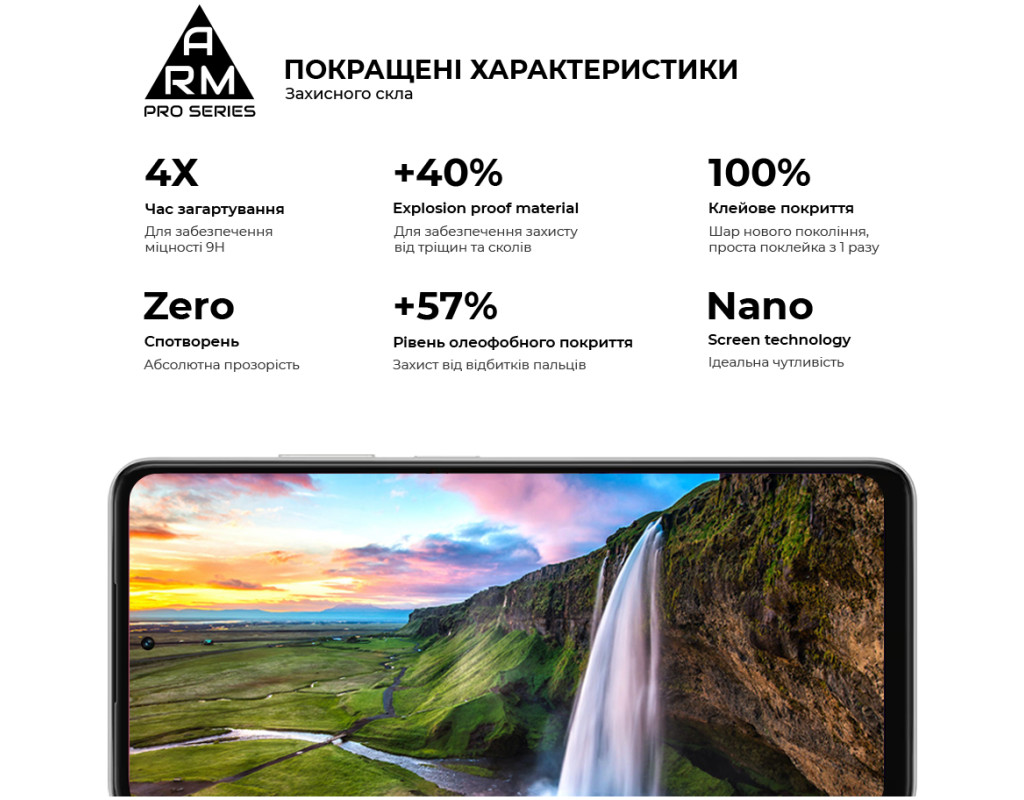 Захисне скло Armorstandart Pro Series - це абсолютно новий рівень захисту дисплея смартфона. У виробництві використовується матеріал Japenese Asahi Glass, який проходить загартування впродовж 4 годин. Це забезпечує ідеальну прозорість захисного покриття без спотворень зображення, а також потужний захист від тріщин і подряпин. Скло ніяк не впливає на чуйність тачскрина. У ньому міститься спеціальний матеріал, що перешкоджає появі відколів. Верхня частина скла містить покращене олеофобне й гідрофобне покриття. Під час використання скла це забезпечує природні тактильні відчуття - пальці легко ковзають по поверхні. Водночас зображення відбивається з автентичною яскравістю й чіткістю без спотворень. Задня частина по всій площі покрита клейовою основою нового покоління. Завдяки цьому досягається повний брак пухирців і можливість переклеювання скла в разі первісного нерівного встановлення. Захисне скло Armorstandart Pro Series має оптимальні габарити та товщину на 0,3 мм. Передбачено вирізи під усі датчики, камери та роз'єми. До комплекту входить усе потрібне для швидкого та комфортного встановлення. Особливості: