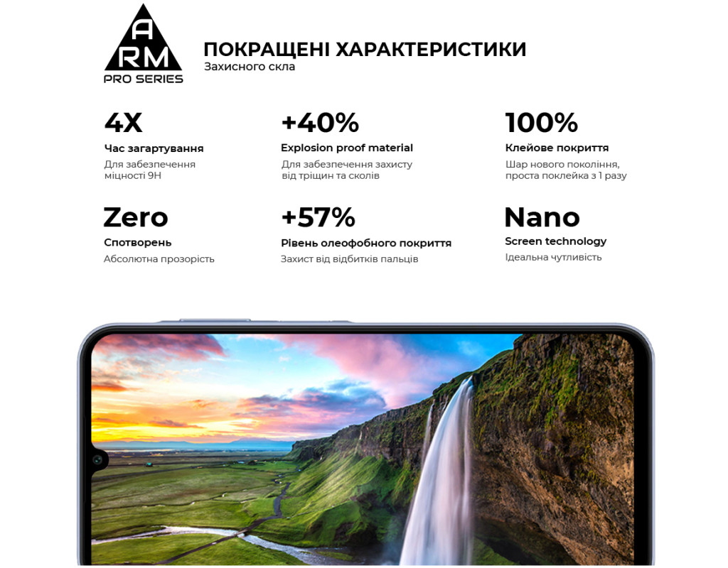 Захисне скло Armorstandart Pro Series - це абсолютно новий рівень захисту дисплея смартфона. У виробництві використовується матеріал Japenese Asahi Glass, який проходить загартування впродовж 4 годин. Це забезпечує ідеальну прозорість захисного покриття без спотворень зображення, а також потужний захист від тріщин і подряпин. Скло ніяк не впливає на чуйність тачскрина. У ньому міститься спеціальний матеріал, що перешкоджає появі відколів. Верхня частина скла містить покращене олеофобне й гідрофобне покриття. Під час використання скла це забезпечує природні тактильні відчуття - пальці легко ковзають по поверхні. Водночас зображення відбивається з автентичною яскравістю й чіткістю без спотворень. Задня частина по всій площі покрита клейовою основою нового покоління. Завдяки цьому досягається повний брак пухирців і можливість переклеювання скла в разі первісного нерівного встановлення. Захисне скло Armorstandart Pro Series має оптимальні габарити та товщину на 0,3 мм. Передбачено вирізи під усі датчики, камери та роз'єми. До комплекту входить усе потрібне для швидкого та комфортного встановлення. Особливості:
