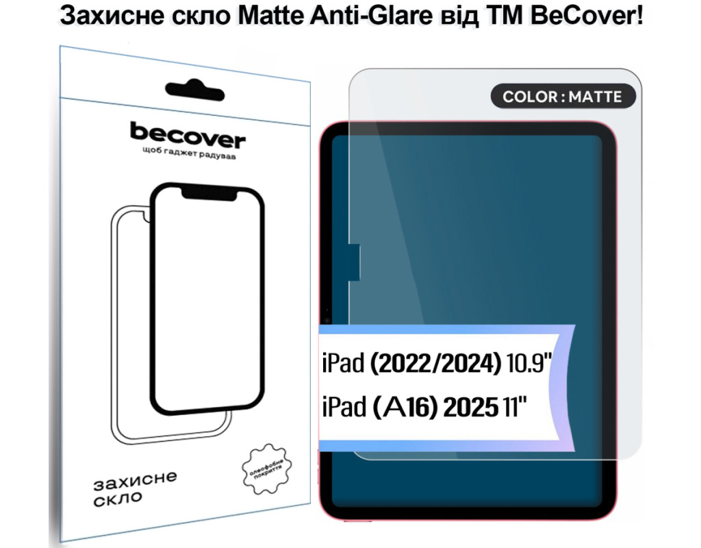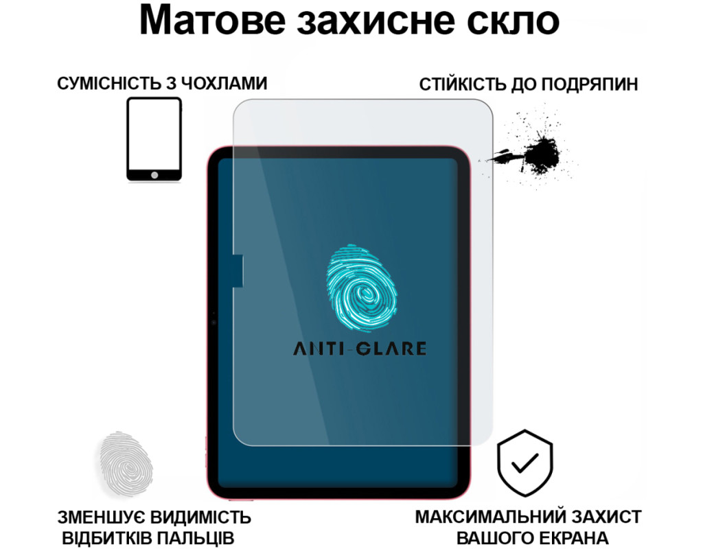 | "Максимальний комфорт і надійний захист з матовим склом від ТМ BeCover Matte Anti-Glare! Відкрийте новий рівень захисту для вашого планшета разом із матовим захисним склом Matte Anti-Glare! Це ідеальне рішення для тих, хто цінує не лише безпеку екрана, а й комфорт користування — без відблисків, віддзеркалень і слідів від пальців. Чому саме Matte Anti-Glare? ✔ Матовий ефект — зменшує відблиски та покращує видимість на екрані навіть при яскравому освітленні. ✔ Точність дотику — забезпечує плавну роботу сенсора без затримок. ✔ Матеріал: загартоване скло з матовим антибліковим покриттям (Anti-Glare) ✔ Надійний захист 9H — скло ефективно протистоїть подряпинам, ударам та щоденному зносу. Оберіть BeCover Matte Anti-Glare — і ваш планшет буде не лише добре захищений, а й зручний у використанні в будь-яких умовах. Захист, комфорт, стиль — усе в одному аксесуарі. Ваш планшет заслуговує на найкраще — оберіть BeCover." |
