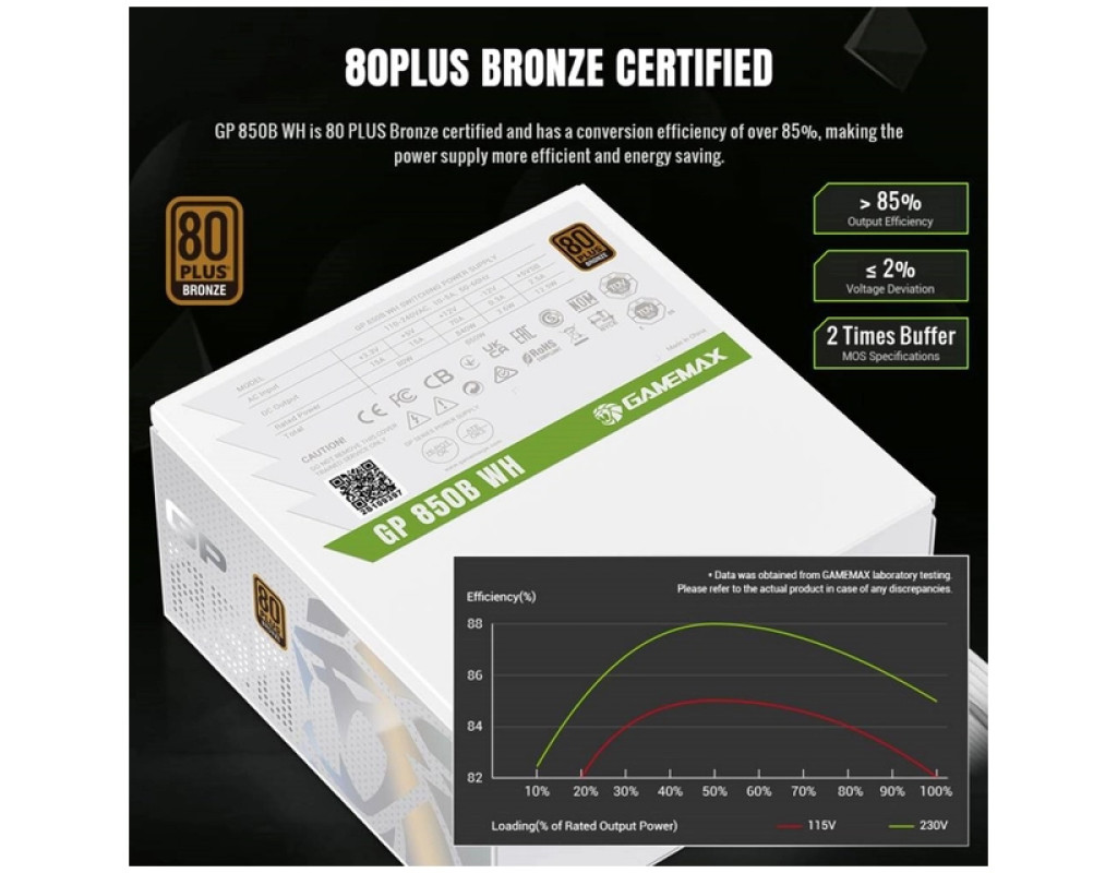 | Блок живлення Gamemax 850W (GP 850B WH) - це серце будь-якої високопродуктивної комп'ютерної системи. Його потужність у 850 Вт забезпечує стабільне і надійне живлення для вашого ПК, роблячи його ідеальним рішенням для геймерів і ентузіастів. Цей блок живлення має модульне підключення кабелів типу Semi, що дозволяє з легкістю організувати кабелі всередині корпусу комп'ютера та зберегти акуратний вигляд. Відповідність стандарту ATX та сертифікація 80 PLUS Gold забезпечують високу енергоефективність, тим самим знижуючи втрати електроенергії та витрати на електрику. Завдяки активному модулю PFC, цей блок живлення забезпечує зниження шумів і підвищення ККД, що, в свою чергу, покращує роботу вашого комп'ютера. Gamemax GP 850B WH оснащено продуманою системою охолодження з вентилятором діаметром 140 мм, який автоматично регулює швидкість обертів залежно від навантаження, забезпечуючи ефективне охолодження й зниження рівня шуму. Це дозволяє блоку ефективно розсіювати тепло і працювати без перегріву, навіть у режимі повного навантаження. Схема подвійного керування постійного струму зі зменшенням пульсацій підвищує стабільність і точність напруги, що є критично важливими для чутливих компонентів. Використання високоякісних тайванських конденсаторів TEAPO гарантує стабільну та надійну роботу навіть під максимальним навантаженням. Це забезпечує тривалий термін служби й максимальну безпеку. Gamemax 850W оснащений численними системами захисту: від перевантаження по струму (OCP), стрибків струму і напруги (SIP), перевантаження по сумарній потужності (OPP), перегрузок (OLP), перегріву (OTP), короткого замикання (SCP) та підвищення напруги (OVP). Це гарантує, що ваша система залишиться незмінно стабільною навіть у випадку виникнення неочікуваних ситуацій. Завдяки підтримці численних роз'ємів, включаючи 24+8 pin для материнської плати, 4+4pin для процесора, і 4x 6+2pin для відеокарт, блок живлення Gamemax 850W може впоратись із найвибагливішими комп'ютерними конфігураціями. Присутність 7 роз'ємів SATA і 3 Peripheral забезпечує легке підключення всіх необхідних компонентів. Габарити розміром 160 x 150 x 85 мм роблять його сумісним із більшістю комп'ютерних корпусів, забезпечуючи універсальність і зручність у використанні. Загалом, Gamemax 850W (GP 850B WH) - це не просто блок живлення, а гарантія надійності та енергоефективності вашої системи, що робить його незамінним компонентом для створення або модернізації вашого ПК. |