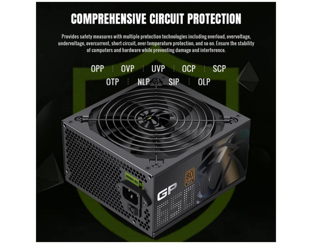 | Ультрастабільний блок живлення GAMEMAX GP 650B 80+ Bronze з подвійним керуванням постійного струму, інтелектуальним вентилятором та преміальним теплорозсіюванням. • Схема подвійного керування постійного струму: має фазозсувні на 180 градусів виходи 3,3 В/5 В, що мінімізує вплив на вхід +12 В та зменшує пульсації для підвищення стабільності та точності напруги ±2%. • Преміальні тайванські конденсатори: використовуються високоякісні конденсатори TEAPO для надійної роботи при повному навантаженні та стабільної подачі живлення. • Вентилятор з інтелектуальним керуванням температурою 14 см: автоматично регулює швидкість вентилятора залежно від навантаження, балансуючи енергоефективність та низький рівень шуму в роботі. • Двостороння друкована плата з верхнім SMD-розташуванням: одностороння конструкція компонентів (без нижніх компонентів) підвищує стабільність та точність виготовлення. • Покращене теплорозсіювання: екструзія алюмінію та оптимізована архітектура теплорозсіювання кристалів забезпечують ефективне охолодження для тривалої роботи. |