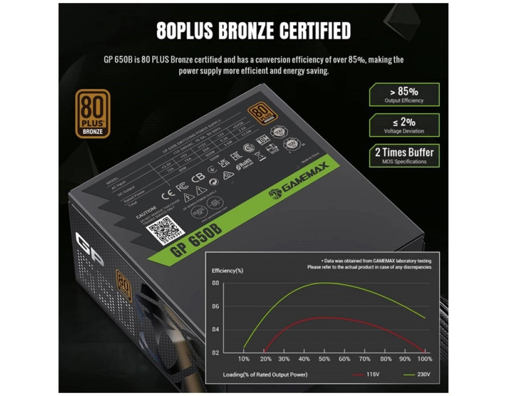 | Блок живлення Gamemax 650W (GP 650B) - це вибір для тих, хто цінує якість та надійність у кожній деталі свого комп'ютера. Розроблений спеціально для забезпечення стабільного живлення вашої системи, цей блок живлення відповідає стандарту ATX та має потужність 650 Вт, що є достатнім для більшості сучасних конфігурацій. Однією із ключових особливостей моделі є її сертифікація 80 PLUS Gold, що гарантує високу енергоефективність та зменшує енергоспоживання, знижуючи витрати на електроенергію. Це досягається завдяки активному модулю PFC, який оптимізує роботу пристрою на різних навантаженнях. Блок живлення Gamemax 650W (GP 650B) оснащений модульним підключенням кабелів типу Semi, що надає користувачеві можливість підключати лише необхідні кабелі, зберігаючи порядок та простір в корпусі комп'ютера. Для зручності підключення материнської плати передбачено роз'єм 24+8 pin, а додаткове живлення для процесора - 4+4 pin. Для геймерів та професіоналів, які використовують потужні відеокарти, особливо цінним стане наявність двох роз'ємів додаткового живлення для відеокарт з підключенням 2x(6+2pin). Це забезпечує стабільне живлення навіть при інтенсивному використанні графічних потужностей. Блок живлення має п'ять роз'ємів SATA та три Peripheral, які дозволяють приєднувати різноманітні пристрої, від жорстких дисків до різноманітної периферії. Тип охолодження представлений інтелектуальним вентилятором діаметром 140 мм, який автоматично регулює оберти залежно від навантаження системи, забезпечуючи баланс між енергоефективністю та низьким рівнем шуму. Безпека вашої системи забезпечується завдяки численним захистам, серед яких OCP, SIP, OPP, OLP, OTP, SCP і OVP. Ці функції формують надійний бар'єр від перевантажень, коротких замикань та небажаних піків напруги, що захищає ваші компоненти від пошкоджень. Конструкція блоку живлення виконана з високоякісних матеріалів, а екструзія алюмінію і оптимізована архітектура теплорозсіювання забезпечують ефективне охолодження та тривалий термін служби. Використання преміальних тайванських конденсаторів TEAPO гарантує стабільну подачу живлення навіть при повному навантаженні, що зменшує ризик збоїв у критичні моменти. Завдяки всім цим характеристикам, блок живлення Gamemax 650W (GP 650B) стає оптимальним вибором для створення потужної та надійної комп'ютерної системи, дозволяючи вам зосередитись на виконанні завдань будь-якої складності без зайвих переживань щодо стабільності та безпеки живлення. |
