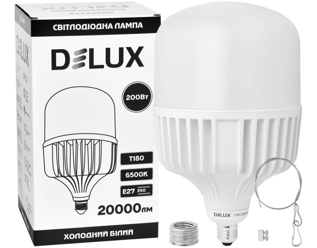 Високопотужні лампи Delux T180 призначені для заміни традиційних ламп розжарювання. Високоякісні компоненти забезпечують високу світлову віддачу 100лм/Вт, безпечну та стабільну роботу лампи. Алюмінієвий ребристий корпус сприяє кращому тепловідводу та позитивно впливає на термін служби. |