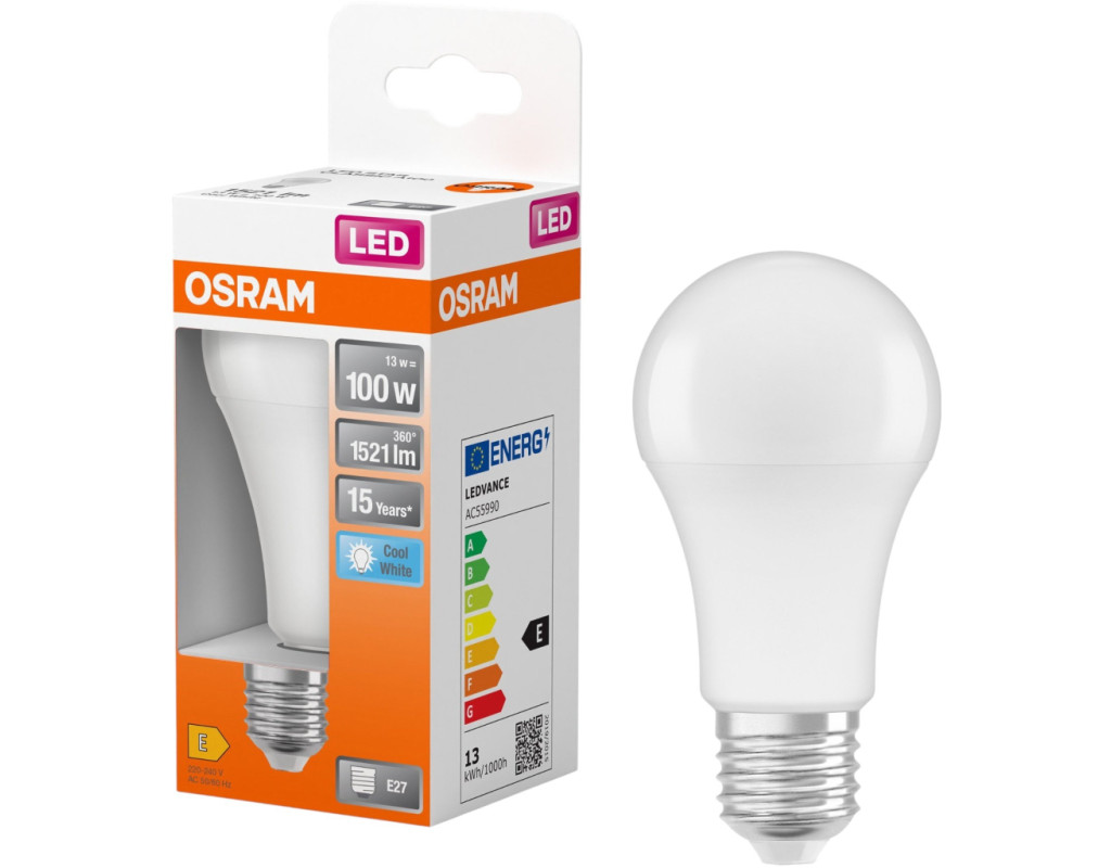 Світлодіодна лампа OSRAM SCLA100 - це сучасне рішення для створення якісного освітлення у вашому домі. Завдяки класичній формі "груші" та матовій колбі, ця лампа поєднує у собі вінтажний стиль та новітні LED-технології. Лампа миттєво вмикається на повну яскравість і має потужність 13 Вт, що еквівалентно 100 Вт традиційної лампи розжарювання. При цьому світловий потік у 1521 лм гарантує достатній рівень освітлення для будь-якого приміщення. Високий індекс передачі кольору (Ra >80) забезпечує природне та комфортне сприйняття кольорів. Кут розсіювання світла до 200° дозволяє рівномірно освітлювати простір, а тривалий термін служби до 15000 годин забезпечує надійну та довготривалу роботу. Переваги продукту: