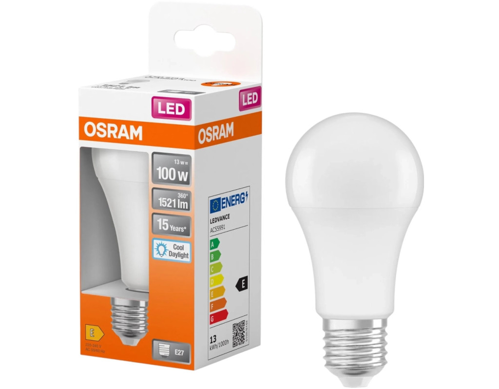 Світлодіодна лампа OSRAM SCLA100 - це сучасне рішення для створення якісного освітлення у вашому домі. Завдяки класичній формі "груші" та матовій колбі, ця лампа поєднує у собі вінтажний стиль та новітні LED-технології. Лампа миттєво вмикається на повну яскравість і має потужність 13 Вт, що еквівалентно 100 Вт традиційної лампи розжарювання. При цьому світловий потік у 1521 лм гарантує достатній рівень освітлення для будь-якого приміщення. Високий індекс передачі кольору (Ra >80) забезпечує природне та комфортне сприйняття кольорів. Кут розсіювання світла до 200° дозволяє рівномірно освітлювати простір, а тривалий термін служби до 15000 годин забезпечує надійну та довготривалу роботу. Переваги продукту: