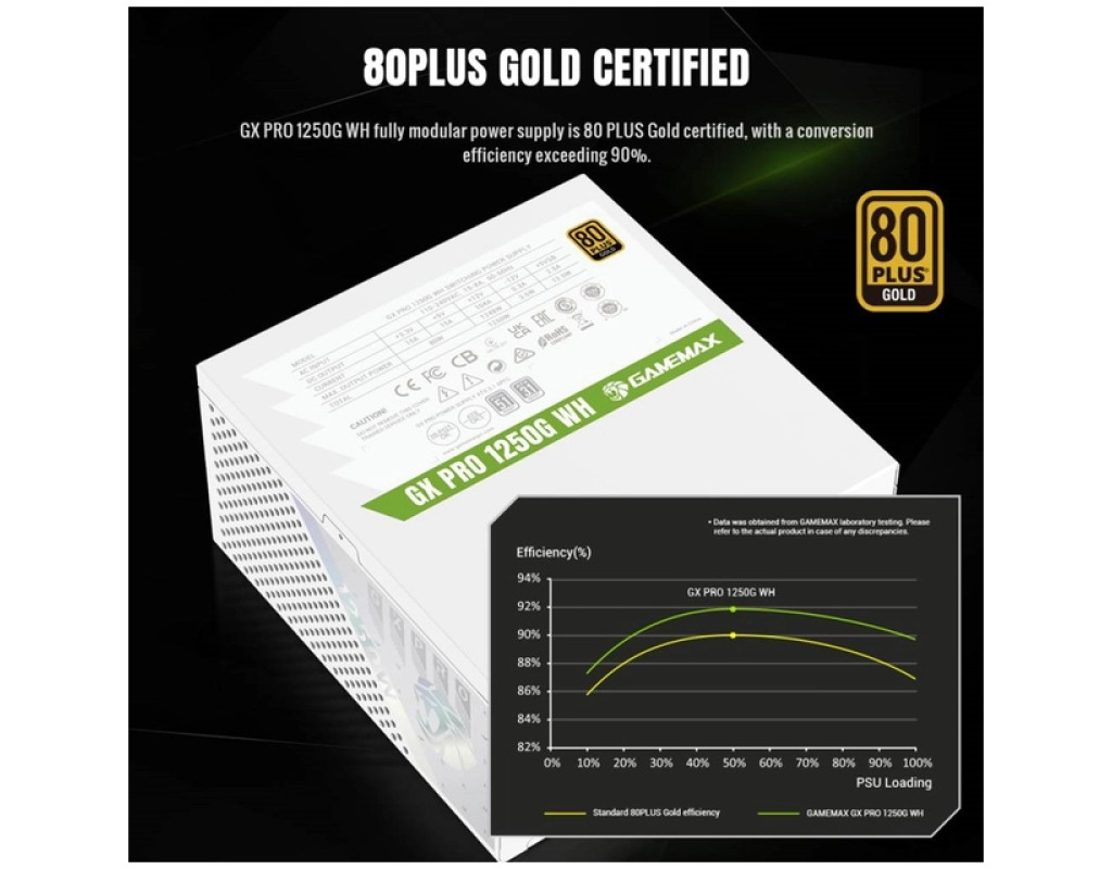 | Блок живлення Gamemax 1250W (GX PRO 1250G WH) — це поєднання потужності, ефективності та інноваційних технологій, створене для тих, хто шукає надійне джерело живлення для свого комп'ютера. Завдяки 1250 Вт потужності, цей блок живлення ідеально підходить для забезпечення стабільною енергією навіть найвибагливіших геймерських систем і робочих станцій. Відзначаючи свою модульну конструкцію, цей блок живлення підтримує Semi-модульне підключення, що дозволяє більш зручно організувати кабелі та поліпшити вентиляцію в корпусі. Стандарт ATX і сертифікація 80 PLUS Gold забезпечують ефективність перетворення енергії до 90%, що допомагає знизити енергетичні втрати та зменшити теплове нагрівання. Підключення материнської плати здійснюється через 24+8 pin, а для процесора — за допомогою двох роз'ємів 4+4 pin, що забезпечує гнучкість та підтримку систем високої продуктивності. Для відеокарт надаються п’ять роз’ємів 6+2 pin, що дозволяє підключити декілька відеокарт для максимальної графічної потужності. Велика кількість роз’ємів, включаючи 10 роз'ємів SATA і 3 Peripheral, забезпечить легке підключення всіх необхідних компонентів. Охолодження — це ще одна особливість GX PRO 1250G WH, яке реалізується через великий 135-мм вентилятор з функцією інтелектуального контролю температури. Ця система охолодження допомагає зберігати робочу температуру на оптимальному рівні, значно знижуючи шум під час роботи, що робить блок живлення практично нечутним у стандартних умовах експлуатації. Японські конденсатори 105°C та твердотільні компоненти підтверджують високу якість і довговічність пристрою, забезпечуючи тривалий термін роботи без втрати продуктивності. Власники цього блоку живлення можуть бути впевнені в його неперевершеній надійності завдяки комплексному набору захистів, включаючи SCP (захист від короткого замикання), SIP (захист від стрибків струму і напруги), OTP (захист від перегріву), OVP (захист від підвищення напруги) та OPP (захист від перевантаження по сумарній потужності). З готовністю до ATX 3.1 і PCIe 5.1, Gamemax 1250W GX PRO 1250G WH сумісний з найновішими технологіями, такими як відеокарти RTX 40/50 серії, що робить його ідеальним вибором для майбутніх апгрейдів. Це означає, що ваш комп'ютер залишиться в актуальному стані на довгі роки вперед. Блок живлення Gamemax GX PRO 1250W — це не просто джерело живлення; це надійний партнер, який допоможе вам реалізувати всі ваші комп'ютерні амбіції, безперебійно забезпечуючи енергію для вашої системи навіть в умовах максимальних навантажень. Це ідеальний вибір для професіоналів, геймерів та ентузіастів, що цінують якість і надійність у всіх аспектах. |