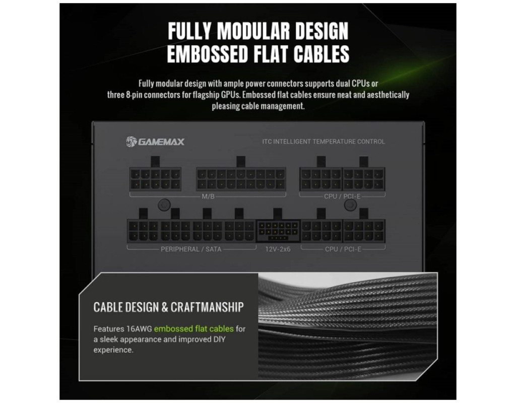 | Блок живлення Gamemax 750W (GX PRO 750G) – це інноваційне рішення для вашого комп'ютера, яке поєднує передові технології й максимальну ефективність у компактному та надійному корпусі. Відповідаючи всім високим вимогам сучасних ігор та обробки даних, цей блок живлення від Gamemax забезпечить потрібну потужність і стабільність роботи для вашого ПК. Однією з головних переваг Gamemax 750W є його висока ефективність, сертифікована за стандартом 80 PLUS Gold. Це означає, що при типових навантаженнях він досягає понад 90% ефективності, що мінімізує втрати енергії і зменшує шум від роботи пристрою. Конструкція APFC+LLC+DC-DC забезпечує не лише стабільну, а й тиху роботу, гарантуючи комфорт під час використання. Блок живлення спроєктований з урахуванням майбутніх технологій: його сумісність із стандартами ATX3.1 та PCIe5.1 дозволяє безперебійно працювати з найновішими відеокартами, такими як RTX 40/50, завдяки вбудованому роз'єму 12V-2x6. Це робить його ідеальним вибором для сучасних геймерів та професіоналів, які потребують надійності та продуктивності. Інтелектуальне терморегулювання досягається завдяки вбудованому вентилятору FDB діаметром 135 мм, який оснащений інтелектуальним контролем температури. Це гарантує оптимальне охолодження та максимальне розсіювання тепла, зберігаючи при цьому низький рівень шуму. Витривалість і якість підтверджуються використанням японських конденсаторів 105°C та твердотільних конденсаторів, що забезпечують довготривалу стабільність і високу продуктивність. Gamemax 750W підтримує модульне підключення кабелів у напівмодульному виконанні, що дозволяє зберегти простір у корпусі та покращити циркуляцію повітря. Вам більше не потрібно турбуватися про безпеку, адже цей блок живлення оснащений розширеною системою захистів, яка включає SIP, OCP, OPP, SCP, OVP, OTP та OLP. Усі ці функції забезпечують захист від стрибків струму та напруги, перевантажень, перегріву та коротких замикань, що гарантує максимальну безпеку вашої системи. Нова модульна конструкція також включає двоступеневий фільтр електромагнітних перешкод та позолочені кабелі, які забезпечують надійні з'єднання з відмінною провідністю. 160 x 150 x 85 мм – це компактний розмір, який легко інтегрується в більшість сучасних корпусів, зберігаючи при цьому бездоганну якість виконання. Gamemax 750W (GX PRO 750G) – це вибір для тих, хто цінує якість і надійність у кожній деталі, гарантуючи безперервну продуктивність комп'ютера в будь-якій ситуації. Це не просто блок живлення, а серце вашої системи, яке забезпечить довготривалу й стабільну роботу навіть у найвибагливіших умовах. |
