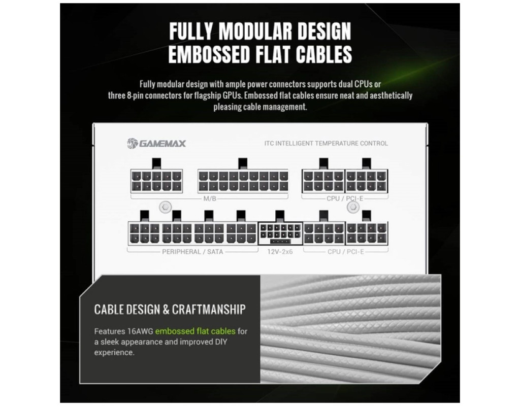 | Блок живлення Gamemax 750W (GX PRO 750G WH) — це високоякісний компонент для тих, хто цінує надійність та ефективність у своєму комп'ютері. Цей блок живлення, розроблений для сучасних систем, відповідає стандарту ATX і пропонує вражаючу потужність в 750 Вт, що робить його ідеальним вибором як для звичайних користувачів, так і для ентузіастів. Однією з ключових переваг цієї моделі є сертифікація 80 PLUS Gold, яка забезпечує до 90% енергоефективності при типових навантаженнях. Це означає, що ваш комп'ютер не лише споживатиме менше енергії, але й генеруватиме менше тепла, що особливо важливо для збереження стабільності системи під час інтенсивних завдань. Завдяки конструкції APFC+LLC+DC-DC, Gamemax мінімізує втрати енергії, що додатково сприяє економії ваших витрат на електроенергію. Особлива увага приділена якості компонентів, що використовуються у виробництві цього блоку живлення. Використання японських конденсаторів та твердотільних конденсаторів гарантує довговічність та стабільну продуктивність протягом усього терміну служби. Це чудовий вибір для тих, хто розраховує на більшу тривалість роботи без збоїв. Блок живлення Gamemax 750W також готовий до ATX3.1 та PCIe5.1, що означає, що він сумісний з найсучаснішими відеокартами, включаючи серії RTX 40/50. Інтегрований роз'єм 12V-2x6 забезпечує безперебійне живлення, що є вирішальним для ігрових систем та систем, які виконують важкі обчислення. Для забезпечення оптимальної роботи системи охолодження блок живлення оснащений інтелектуальним 135 мм вентилятором FDB з інтелектуальним контролем температури. Це забезпечує тихе охолодження та відмінне розсіювання тепла, що є критичним під час виконання ресурсомістких завдань. Вентилятор працює практично безшумно, забезпечуючи комфортну роботу навіть під великим навантаженням. Gamemax GX PRO 750G WH також має напівмодульну конструкцію підключення кабелів (Semi), що надає можливість зручно організувати робочий простір в корпусі комп'ютера. Це дозволяє уникати безладу кабелів та поліпшує циркуляцію повітря для кращого охолодження внутрішніх компонентів. Захисні функції блоку живлення вражають своєю різноманітністю. Вони охоплюють SIP (захист від стрибків струму та напруги), OCP (захист від перевантаження по струму), OPP (захист від перевантаження по сумарній потужності), SCP (захист від короткого замикання), OVP (захист від перевищення напруги), OTP (захист від перегріву) та OLP (захист від перевантажень). Цей комплекс захисних механізмів гарантує безперебійну та безпечну роботу вашої системи, навіть у разі непередбачуваних змін електромережі. Завдяки своїм характеристикам та дизайну, блок живлення Gamemax 750W (GX PRO 750G WH) є ідеальним вибором для тих, хто шукає надійний та потужний компонент для своєї системи. Він гарантовано забезпечить високу продуктивність та стабільну роботу, відповідаючи найвищим стандартам якості та сучасним вимогам користувачів. Це інвестиція у продуктивність вашого ПК на довгі роки вперед. |
