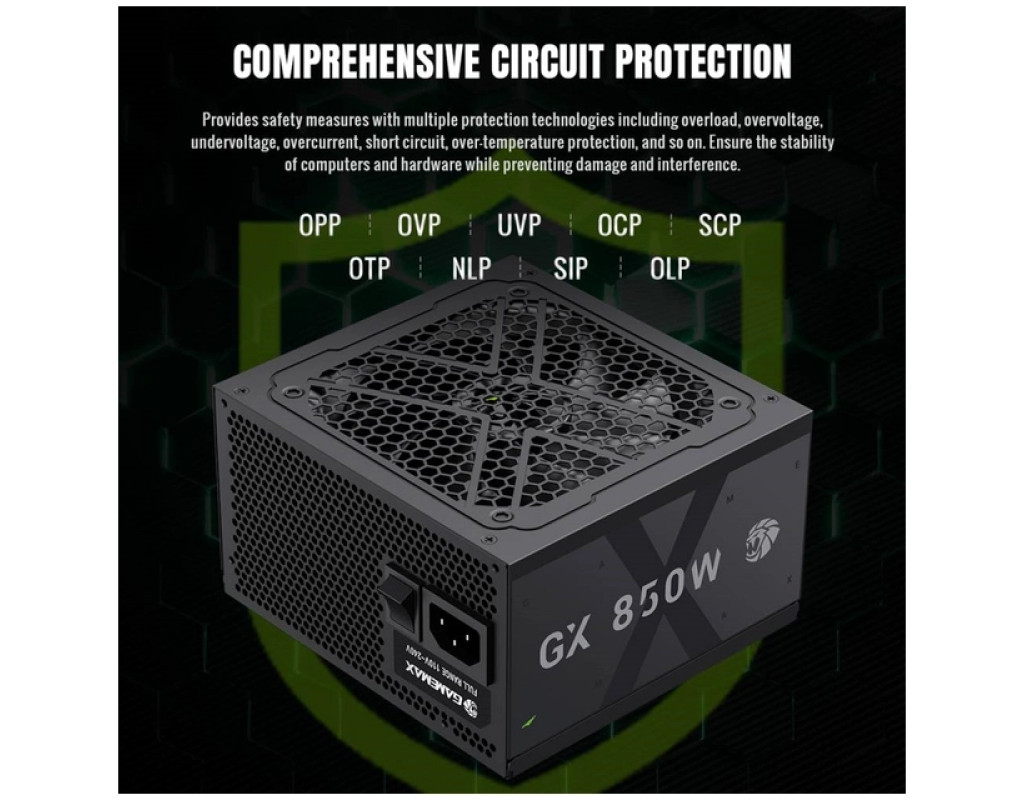 | Блок живлення Gamemax 850W (GX 850GF) – це надійний вибір для будь-якого комп'ютерного ентузіаста, який прагне поєднати високу продуктивність із довговічністю. Спеціально розроблений для потужних систем, цей модульний блок живлення здатен задовольнити вимоги навіть найвибагливішого користувача. Завдяки стандарту ATX, він легко інтегрується у більшість сучасних корпусів, забезпечуючи стабільну роботу всієї системи. Потужність 850 Вт гарантує ефективне живлення навіть найвимогливіших компонентів, таких як потужні процесори та графічні карти. Завдяки сертифікації 80 PLUS Gold, блок живлення забезпечує ефективність понад 92%, мінімізуючи втрати енергії та знижуючи експлуатаційні витрати. Це досягається завдяки інноваційним технологіям LLC та DC-DC, які оптимізують перетворення енергії та підвищують стабільність вихідної напруги. Однією з ключових особливостей Gamemax GX 850GF є модульне підключення кабелів. Конструкція типу Semi-modular дозволяє легко організувати внутрішній простір корпуса, забезпечуючи оптимальний повітряний потік та зручніше управління кабелями. Ви зможете підключати лише ті кабелі, які вам дійсно потрібні, забезпечуючи чистоту та акуратність всередині комп'ютера. Для тих, хто цінує тишу під час роботи, блок живлення оснащений великим 120 мм вентилятором. Завдяки FDB-технології, вентилятор працює тихо та ефективно розсіює тепло, гарантуючи охолодження без зайвого шуму. Це важливо, особливо у випадку інтенсивного навантаження на систему. Надійність блоків живлення Gamemax підтверджується використанням тільки твердотільних конденсаторів та SMT-компонентів, що забезпечують не тільки стабільну роботу, але й продовжують термін служби пристрою. Важливою перевагою є також активний модуль PFC, який додатково оптимізує показники ефективності. Безпека – невід'ємна частина цього блоку живлення. Gamemax GX 850GF оснащений сімома рівнями захисту: від короткого замикання (SCP), перевантаження по струму (OCP) та підвищення напруги (OVP) до захисту від перегріву (OTP) і перепадів напруги (SIP). Це гарантує безперебійну роботу вашого ПК та спокій за збереженість дороговартісного обладнання. Gamemax GX 850GF має широку сумісність із сучасними компонентами, підтримуючи найновіші відеокарти за допомогою чотирьох 6+2pin роз'ємів. Безпроблемне підключення материнської плати забезпечується роз'ємами 24+8 pin, а для процесорів передбачено два роз'єми 4+4pin. У комплект входить до шести роз'ємів SATA та три роз'єми Peripheral, які дозволяють підключити різноманітні додаткові системи зберігання даних та периферійні пристрої. Розміри блоку живлення – 140 x 150 x 85 мм, що робить його універсальним вибором, який легко встановити у більшість стандартних комп'ютерних корпусів. З Gamemax GX 850GF ви отримаєте комбінацію якості, продуктивності та безпеки, яка надасть вашій системі потужність і надійність, потрібні для будь-яких завдань – від ігор до професійних обчислень. |
