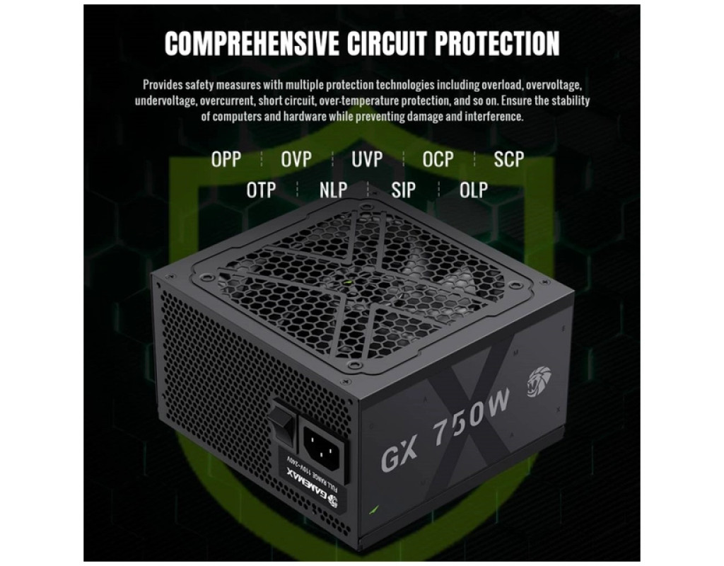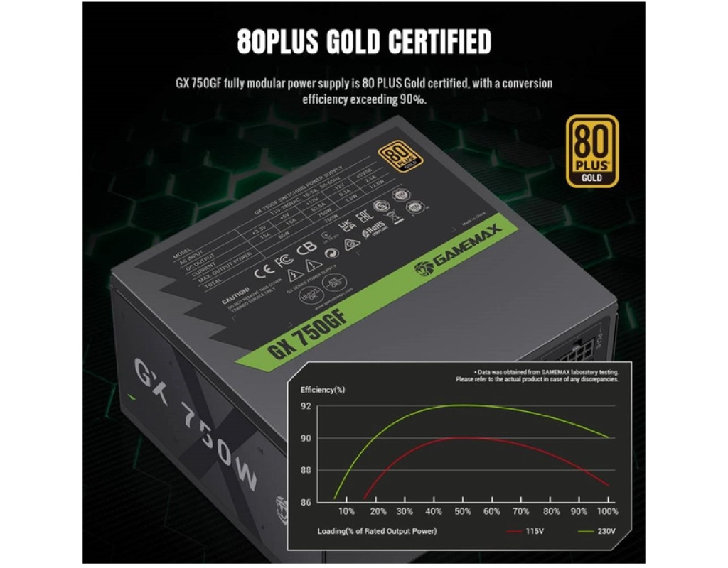 | Блок живлення GameMax 750W (GX 750GF) — це ідеальний вибір для тих, хто прагне максимізувати ефективність своєї комп'ютерної системи. Завдяки сертифікації 80 PLUS Gold, цей модульний блок живлення гарантує понад 92% ефективності, що не лише знижує витрати на електроенергію, але і підтримує екологічні стандарти продуктивності. Використання передових технологій, таких як LLC та DC-DC, робить його чудовим варіантом для додаткової економії енергії. Якість компонентів блоку живлення GameMax GX 750GF підтверджується міцною конструкцією, до якої входять повністю твердотільні конденсатори та SMT-компоненти. Це забезпечує підвищену стабільність, надійність та тривалий термін служби. Ви можете бути впевнені, що ваша система буде працювати без збоїв навіть при високих навантаженнях, завдяки активному модулю PFC, який забезпечує стабільну подачу енергії. Однією з найпомітніших особливостей GameMax GX 750GF є його модульна конструкція. Завдяки Semi модульному підключенню кабелів, користувачі можуть під’єднувати лише ті кабелі, які їм необхідні, що дозволяє організувати простір всередині корпусу максимально ефективно і забезпечити чудовий повітряний потік. Це значно покращує кондицію системи та спрощує її обслуговування. Цей блок живлення просто створений для геймерів та користувачів, які потребують високої продуктивності. З можливістю підключення до 4 відеокарт за допомогою 4x 6+2pin роз'ємів, він відповідає вимогам новітніх графічних адаптерів, які потребують підвищеної потужності. Шість SATA роз'ємів дозволяють використовувати кілька SSD чи HDD дисків, а три роз'єми Peripheral дозволяють підключати додаткові пристрої, розширюючи функціональність вашої системи. Охолодження блоку живлення забезпечується вентилятором з діаметром 120 мм, який обладнаний FDB-підшипником. Це інноваційне рішення забезпечує не лише тиху, але й холодну роботу навіть під час інтенсивних навантажень. Окрім цього, блок живлення оснащений sімома рівнями захисту, такими як OCP, SIP, OPP, SCP, OVP, OTP та OLP, що надає додаткову безпеку вашій системі, захищаючи її від перевантажень, підвищеної напруги та інших можливих пошкоджень. Розміри блоку живлення — 140 x 150 x 85 мм, дозволяють встановити його у більшість стандартних ATX-корпусів. Це робить його ідеальним вибором для створення потужних і водночас компактних ПК-систем. Якщо ви шукаєте надійний блок живлення, який поєднує високу ефективність, широкий функціонал та бездоганну якість компонентів, GameMax 750W (GX 750GF) стане відмінним доповненням до вашого комп'ютера, гарантуючи йому стабільну роботу протягом всього терміну експлуатації. |