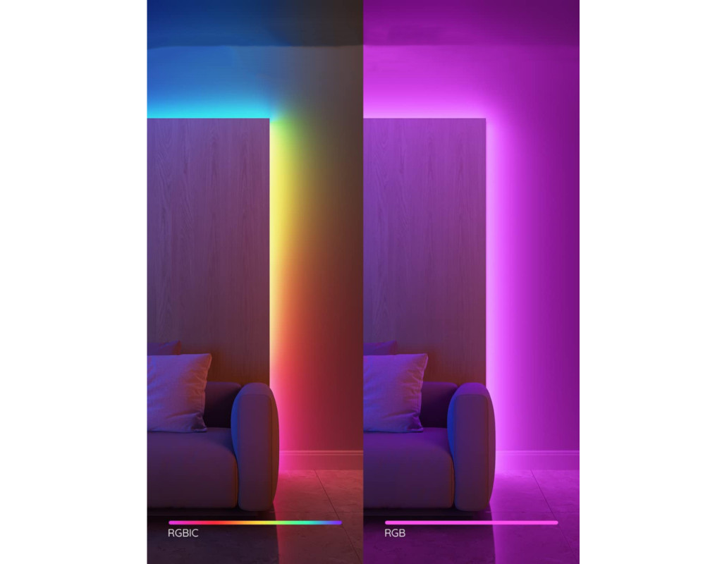 Розумна LED стрічка Govee H611 LED Strip Lights, 10м, RGB, WI-FI/Bluetooth (H61103A3) – це ідеальний спосіб додати яскравості та атмосфери в будь-яке приміщення. З довжиною 10 метрів (2 / 5 м), ця стрічка відкриває нові можливості для освітлення дому, створюючи унікальні світлові ефекти, які можна налаштувати під будь-які події та настрої. Ідеальна для створення затишної атмосфери на вечірках, у кімнаті відпочинку або навіть на робочих столах. Ви можете легко керувати освітленням за допомогою мобільного додатку Govee Home або через голосових помічників, таких як Google Assistant та Alexa. Керуйте яскравістю, кольорами та ефектами без зусиль, використовуючи інноваційні технології Wi-Fi та Bluetooth. 16 мільйонів кольорів і динамічні режимиЗ Govee H611 вам доступно понад 16 мільйонів кольорів, що дозволяє створити ідеальне освітлення для будь-якої ситуації. Незалежно від того, хочете ви створити атмосферу затишку в спальні чи веселу обстановку для вечірки, світлодіодна стрічка забезпечить саме той колір, який відповідає вашому настрою. Крім того, пристрій пропонує 64 унікальних режими освітлення, які відображають різні природні явища, емоції, повсякденне життя та святкові події. Це чудовий спосіб адаптувати освітлення під будь-яку подію, будь то романтична вечеря чи захоплюючий перегляд фільму. Синхронізація з музикоюGovee H611 оснащена вбудованим мікрофоном, який дозволяє синхронізувати світлодіоди з музикою. Під час вечірки або відпочинку в колі друзів, стрічка буде змінювати кольори в такт музиці, створюючи неймовірну атмосферу і підвищуючи емоції від того, що відбувається. Музика і світло тепер працюють в тандемі, забезпечуючи яскраві та незабутні враження. Зручність керування та налаштуванняДля керування освітленням використовується мобільний додаток Govee Home, доступний як для iOS, так і для Android. Це дає вам можливість змінювати налаштування освітлення на відстані за допомогою Bluetooth до 10 метрів. Ви можете вибирати кольори, включати або вимикати стрічку, регулювати яскравість і вибирати режими роботи все це прямо з вашого смартфона. Зручне керування дозволяє інтегрувати світлову стрічку в ваш розумний дім, роблячи її чудовим доповненням до сучасної автоматизації. Технологія RGBIC для більш насичених ефектівЯкщо ви хочете більшого контролю над ефектами освітлення, Govee H611 пропонує технологію RGBIC, яка дозволяє відображати кілька кольорів одночасно в різних сегментах стрічки. Це дає можливість створювати унікальні світлові шоу та ефекти, змінюючи освітлення по сегментах залежно від ваших уподобань. На відміну від стандартних RGB-стрічок, які можуть відображати тільки один колір по всій довжині, технологія RGBIC пропонує більше творчих можливостей для вашого інтер'єру. Розумне керування та інтеграція з розумним домомКрім того, Govee H611 підтримує голосове керування через Google Assistant та Amazon Alexa, що робить взаємодію з стрічкою ще зручнішою. Просто скажіть голосовій команді змінити колір або яскравість, і світлодіодна стрічка миттєво відреагує на ваші запити. До того ж, за допомогою Wi-Fi та Bluetooth ви можете інтегрувати Govee H611 у вашу розумну домашню систему і контролювати освітлення з будь-якої точки вашого дому. Простота установки та використанняLED стрічка Govee H611 постачається з необхідними аксесуарами для легкої установки, а завдяки гнучкості стрічки та можливості її різання і з'єднання, ви зможете і
