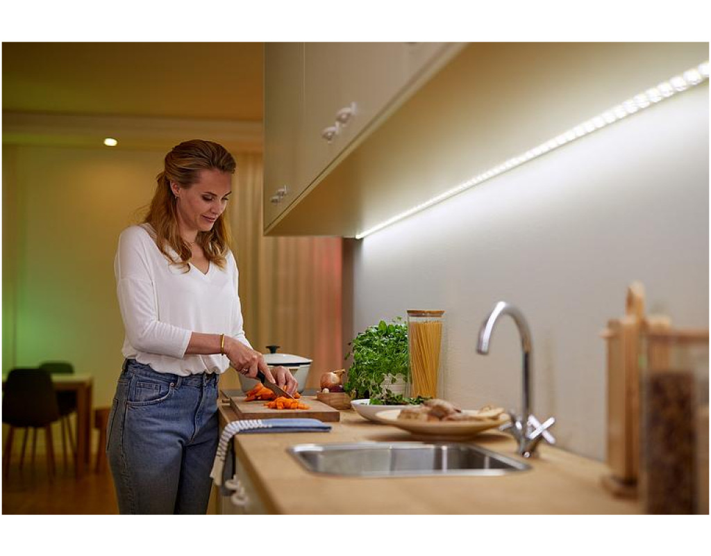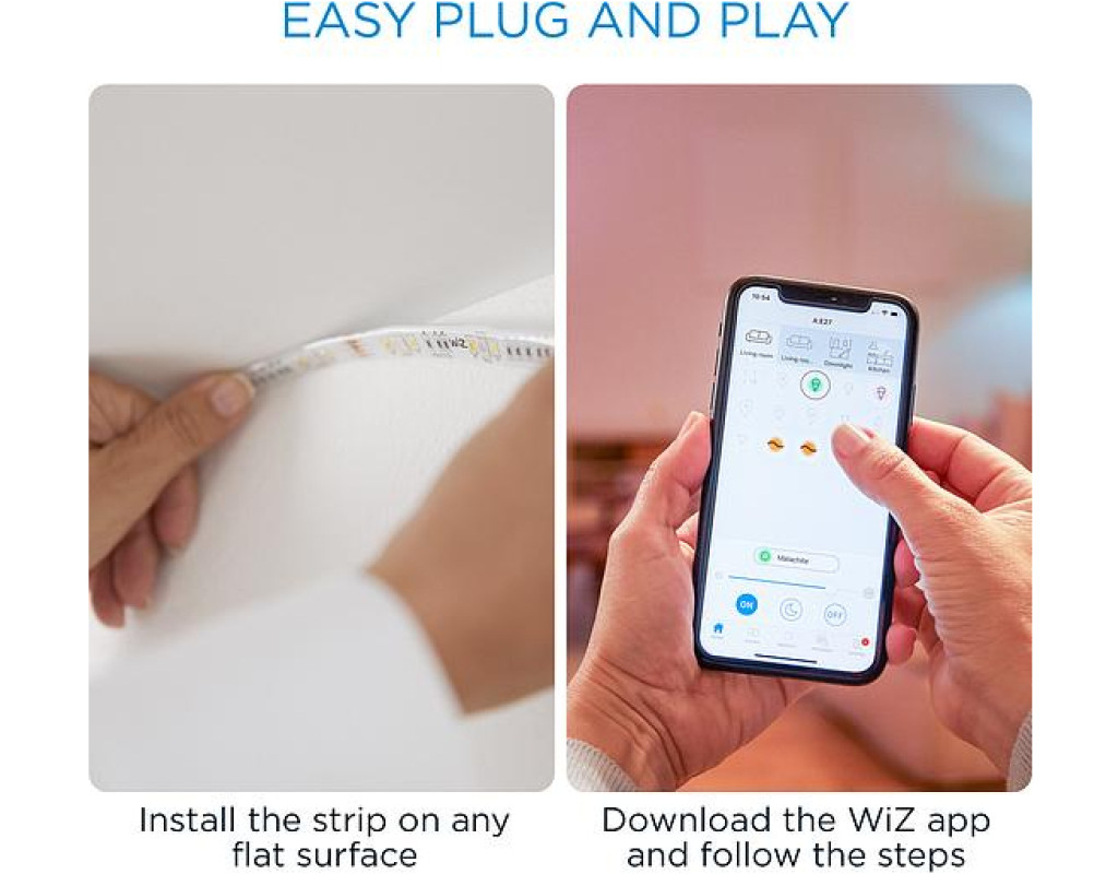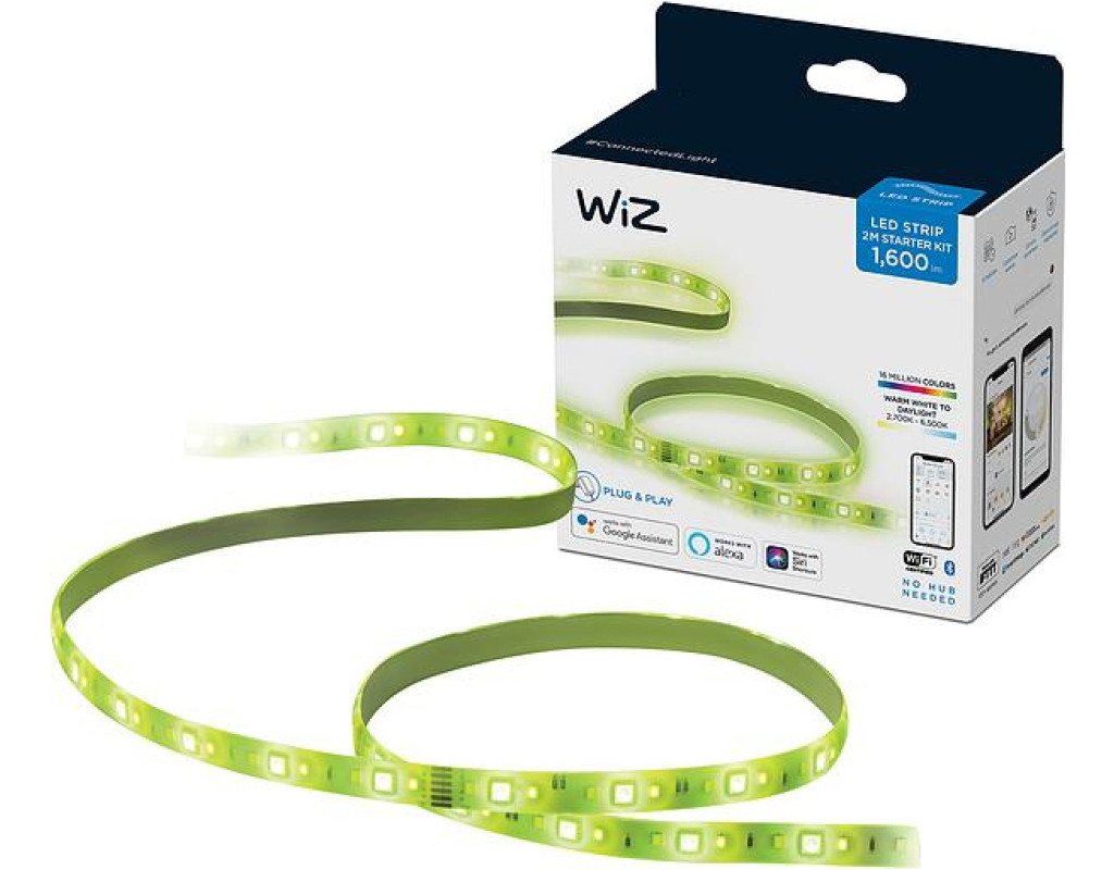 Розумна світлодіодна стрічка WiZ LEDStrip. Миттєва готовність до використання. Керування з будь-якого місця. Регульований теплий та холодний білий колір, а також попередньо задані режими. Автоматичне увімкнення освітлення за розкладом. |
