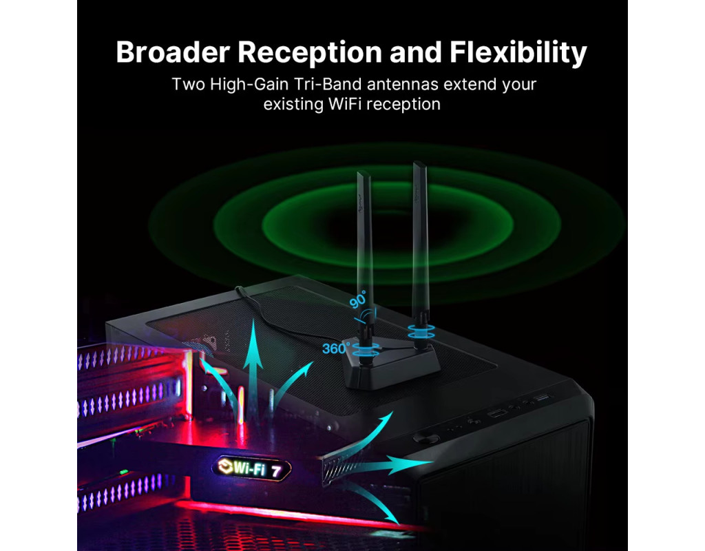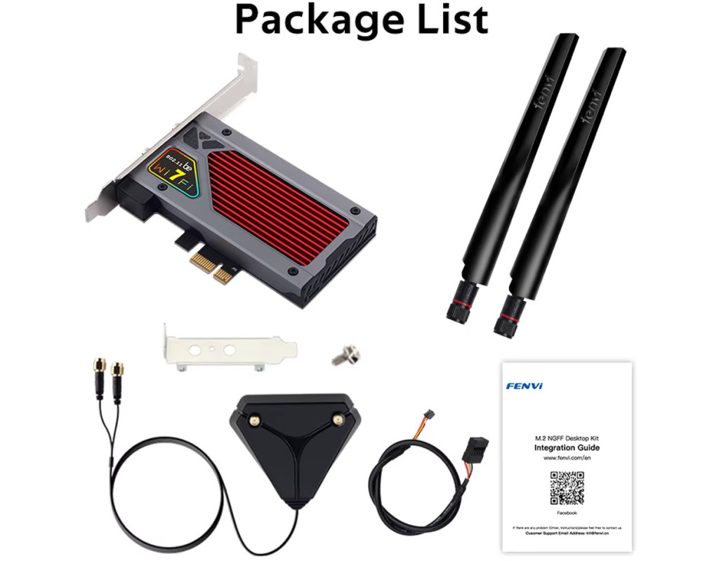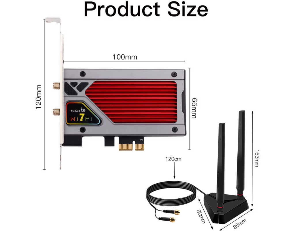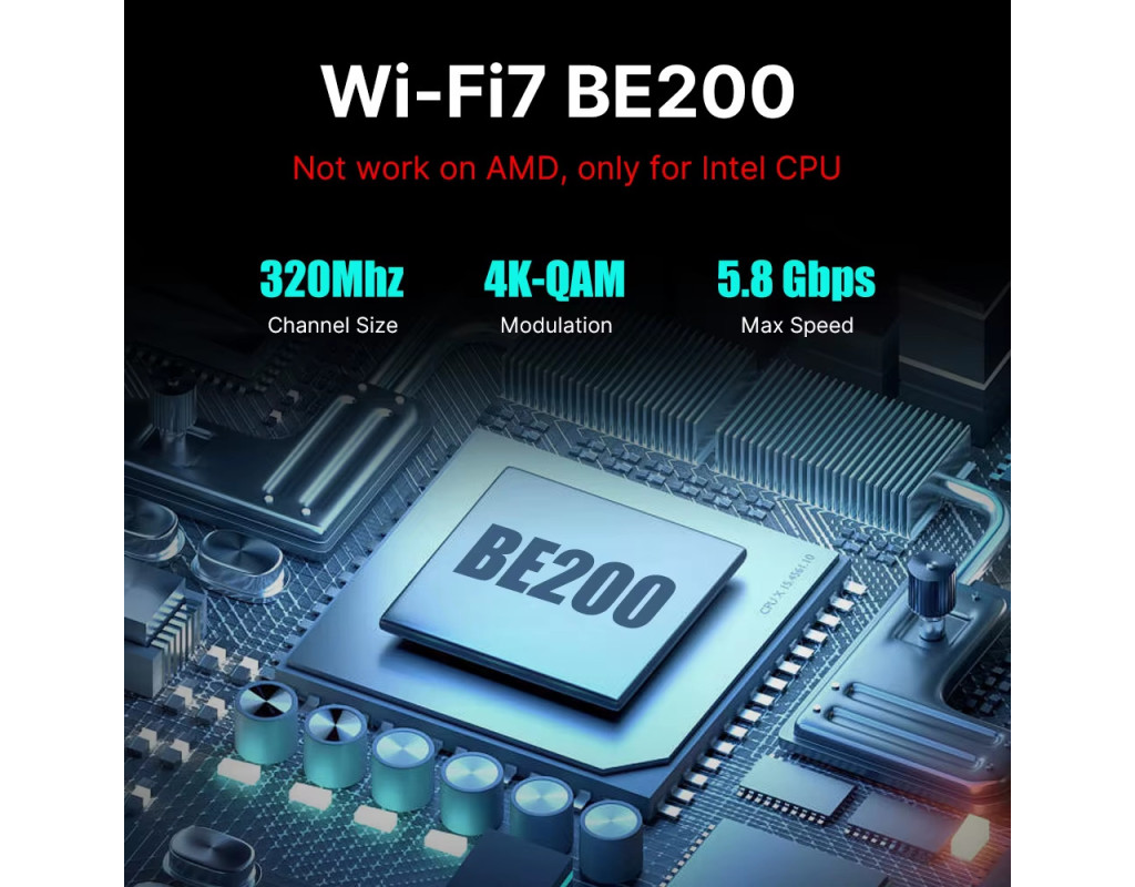 Увага: Intel BE200 не сумісний з материнськими платами на базі AMD — працює лише з процесорами Intel! Характеристики: Модель: WiFi 7 Intel BE200 з RGB-підсвіткою, PCI-E бездротовий адаптер Чипсет: BE200NGW Стандарти: Новий Wi-Fi 7 + Bluetooth 5.4 Швидкість передачі даних: 2.4GHz — до 574 Мбіт/с 5GHz — до 2400 Мбіт/с 6GHz — до 5800 Мбіт/с (320 МГц) Операційні системи: Підтримка лише Windows 10/11 (64-біт) 6GHz працює тільки у Windows 11 (64-біт) Підтримка технологій: MU-MIMO та OFDMA Сумісність: Підходить майже до всіх ПК з PCI Express (PCI-E 1X/4X/16X) Особливості: Геймерське RGB-підсвічування Антена з високим посиленням (кабель 1.2 м) Радіатор охолодження спеціальної конструкції для стабільної роботи Питання та відповіді: Q1: Чи працює на материнках AMD? A: Ні. Q2: Чи підтримує Linux? A: Наразі драйвери доступні тільки для Windows 10/11. Linux не підтримується. Q3: Чи підтримується Wi-Fi та Bluetooth? A: Так, обидві функції підтримуються. Але драйвери потрібно встановлювати окремо. Q4: Bluetooth не працює — що робити? A: Підключіть 9-контактний USB-кабель (чорний) з комплекту до роз’єму USB 2.0 на материнській платі. Білий кінець — до адаптера. Потім встановіть драйвер Bluetooth. Q5: Wi-Fi не працює — що робити? A: Перевірте диспетчер пристроїв — якщо є "мережевий контролер" із жовтим знаком — встановіть драйвер. Якщо драйвер встановлений, але проблема лишається — оновіть його вручну. Перевірте, чи немає M.2 SSD на тому ж каналі — можливий конфлікт. Переконайтесь, що антена підключена надійно. Якщо в ПК є вбудований Wi-Fi — вимкніть його. Q6: Де завантажити драйвери? A: З сайту Fenvi або Intel (пошук за “WiFi 7 BE200”). Q7: Чи можу я оновити Wi-Fi 5 за допомогою цього адаптера? A: Так, за умови наявності вільного PCI-E слота. При встановленні адаптера вимкніть вбудований модуль Wi-Fi. Q8: Чому Wi-Fi не досягає 5800 Мбіт/с на 6GHz? A:Максимальні швидкості — це теоретичні показники з документації IEEE. Реальна швидкість залежить від мережі, роутера, перешкод, кількості пристроїв. Спробуйте інший PCIe слот (наприклад, x16). 6GHz доступний лише у Windows 11 або Dev-версії Windows 10. Роутер має підтримувати 802.11be та 320 МГц. |