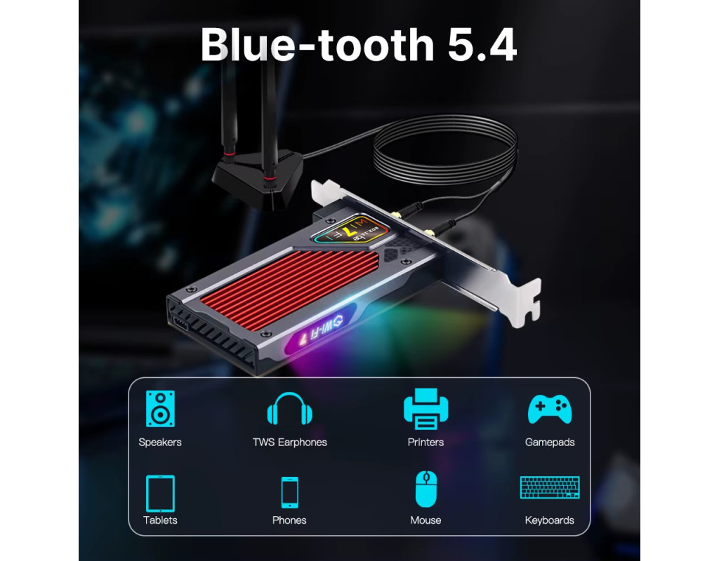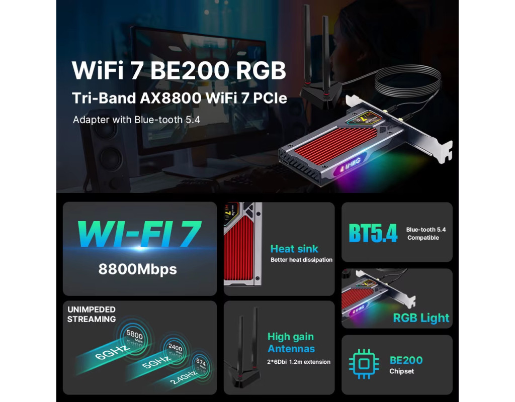 | WiFi 7 FV-BE8800RGB PCI-E Бездротовий адаптер BT 5.4 для Intel BE200