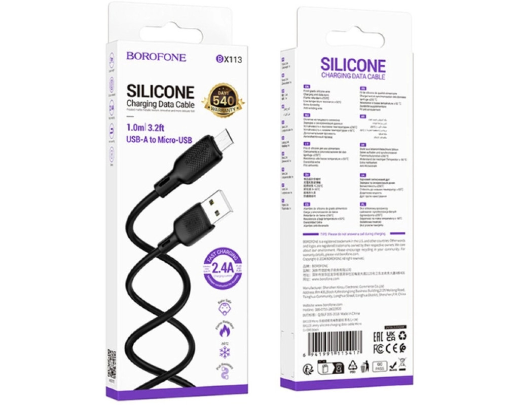 | Кабель BOROFONE BX113 Lenny USB-A to Micro-USB — це стильний та функціональний кабель у м’якому силіконовому обплетенні, призначений для ефективної зарядки, синхронізації та передачі даних між пристроями. Струм до 2.4 A оптимізований для підтримки швидкого заряджання ваших девайсів. Кабель забезпечує надійну та стабільну передачу даних між пристроями, а мала вага та компактний дизайн роблять його зручним для перенесення та використання в дорозі. Силіконове обплетення не тільки надає кабелю стильного вигляду, але й зміцнює його, роблячи більш стійким до зносу і запобігаючи заплутуванню. |