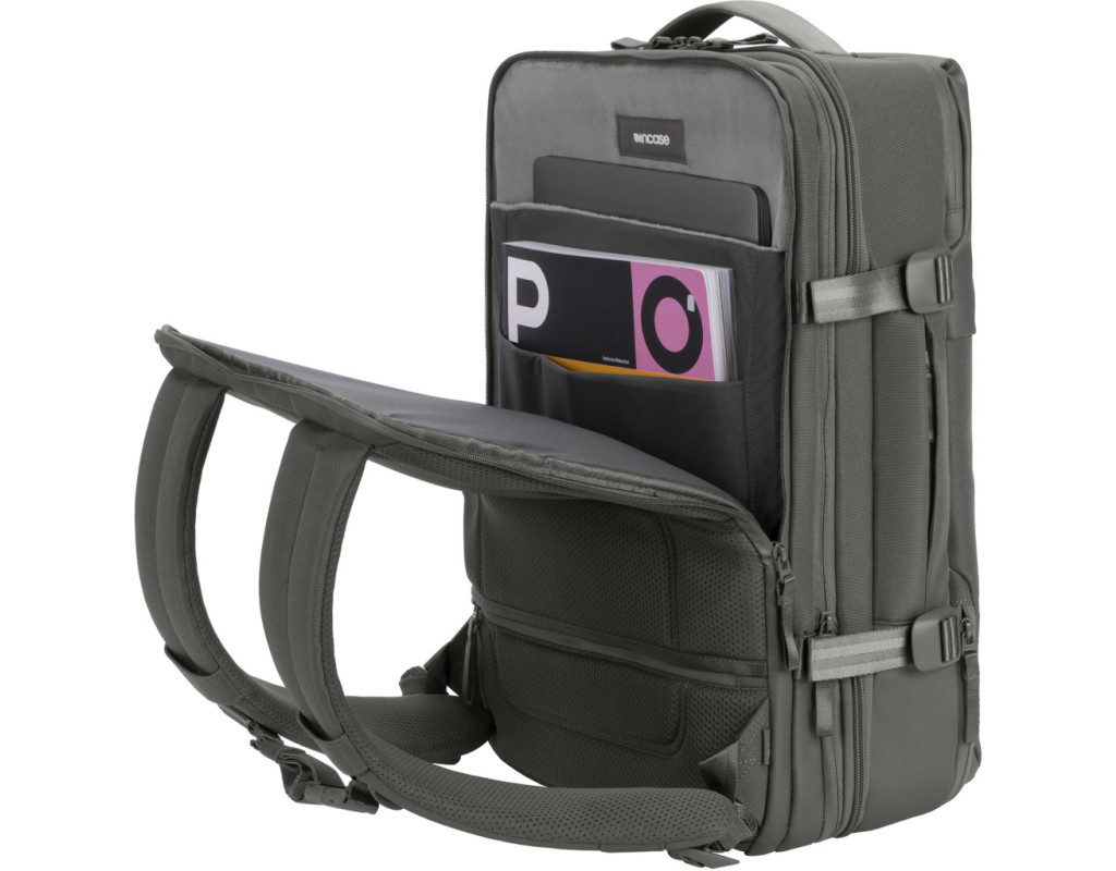 Incase A.R.C. Travel Pack – це універсальний рюкзак, розроблений для сучасних мандрівників, які цінують комфорт, функціональність та екологічність. Виготовлений із 100% переробленого поліестеру ReSpun, він поєднує стильний дизайн із продуманою організацією внутрішнього простору, що робить його ідеальним для бізнес-подорожей, щоденного використання та вихідних поїздок.Особливості:- Екологічні матеріали: Виготовлений із ReSpun – 100% переробленого поліестеру з водовідштовхувальним покриттям C0, що забезпечує захист від вологи та довговічність.