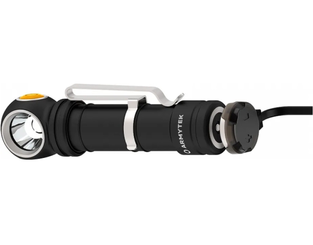 Налобний кутовий ліхтарик, оснащений світлодіодом LED Cree XHP70.2 з максимальним рівнем яскравості 3870 люменів і дальністю дії світла до 181 м. Корпус виготовлений з авіаційного алюмінію, покритого твердим матовим анодуванням типу III. Ліхтарик захищений від пилу та води за стандартом IP68 (безпечне занурення на глибину до 10 м на 2 години), а також стійкий до ударів і падінь з висоти 10 м. Вбудований в задню частину корпусу магніт дозволяє прикріпити ліхтарик до будь-якої металевої поверхні, а знімна сталева кліпса дозволяє прикріпити його, серед іншого, до кишені, ременя або рюкзака. Крім того, ліхтарик можна використовувати як налобний ліхтарик. Комфортне використання в рукавицях забезпечує збільшена бічна кнопка, яка також слугує захистом від випадкового ввімкнення ліхтарика. Кутовий ліхтарик живиться від акумулятора 21700 Li-Ion, який заряджається за допомогою магнітного USB-зарядного пристрою. Завдяки адаптеру він також може працювати від елемента Li-Ion 18650. Стан заряду акумулятора відображається за допомогою видимого індикатора. Активний контроль температури в режимі реального часу запобігає перегріванню понад 58 градусів за Цельсієм та інформує користувача за допомогою світлодіодної системи про стан перегріву пристрою. Крім того, використовується індикатор рівня заряду батареї, який безперервно блимає кожні 4 секунди, що дозволяє знаходити ліхтарик в темряві. 6 базових режимів і 10 при перемиканні на професійне управління. Режими роботи / яскравість / час світіння: У комплект входять: Технічні характеристики